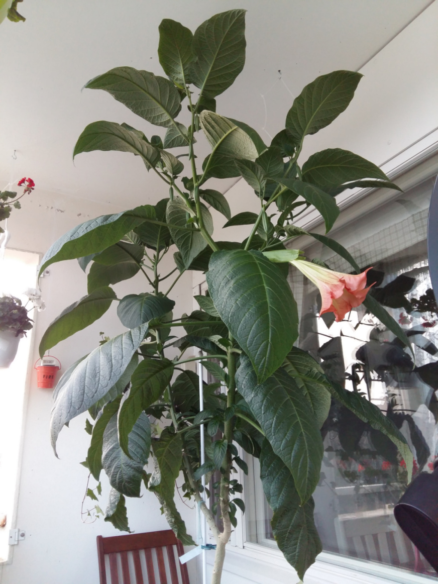 2 tänä vuonna hankittua lähti kasvaa, 1 paleltui auton sisällä keväällä. Nuppuja, tosin pieniä on kahdessa pasuunassa, ehkä kerkee kukkia,