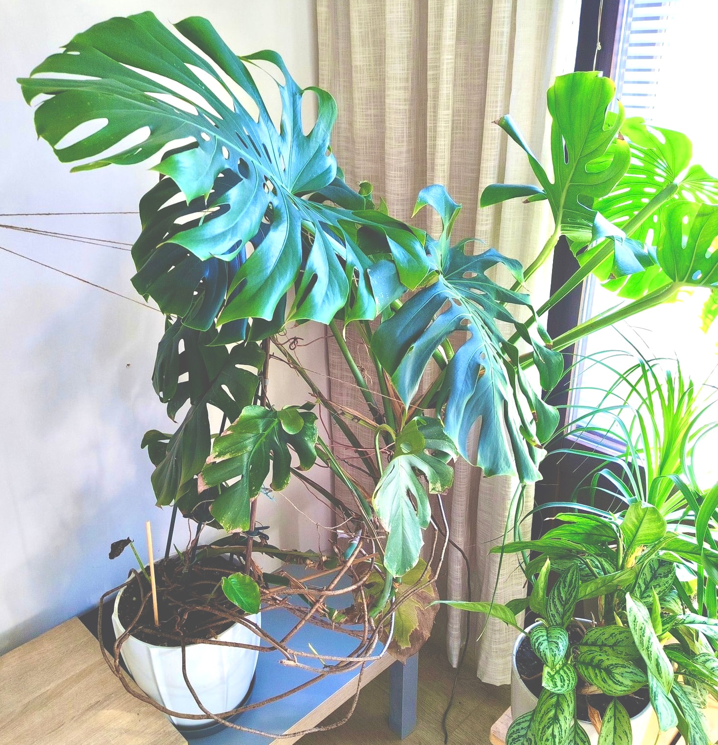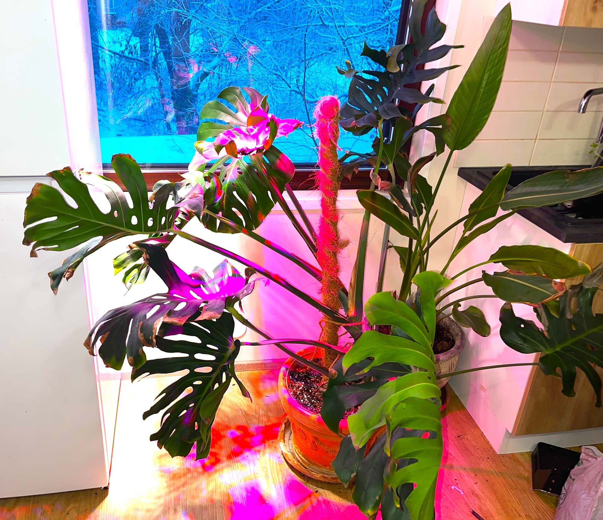 Mulla oli tuo Monstera ulkona, peruutin syksyllä vahingossa autolla sen päälle ja ruukku hajosi, tekevälle sattuu.![]()
