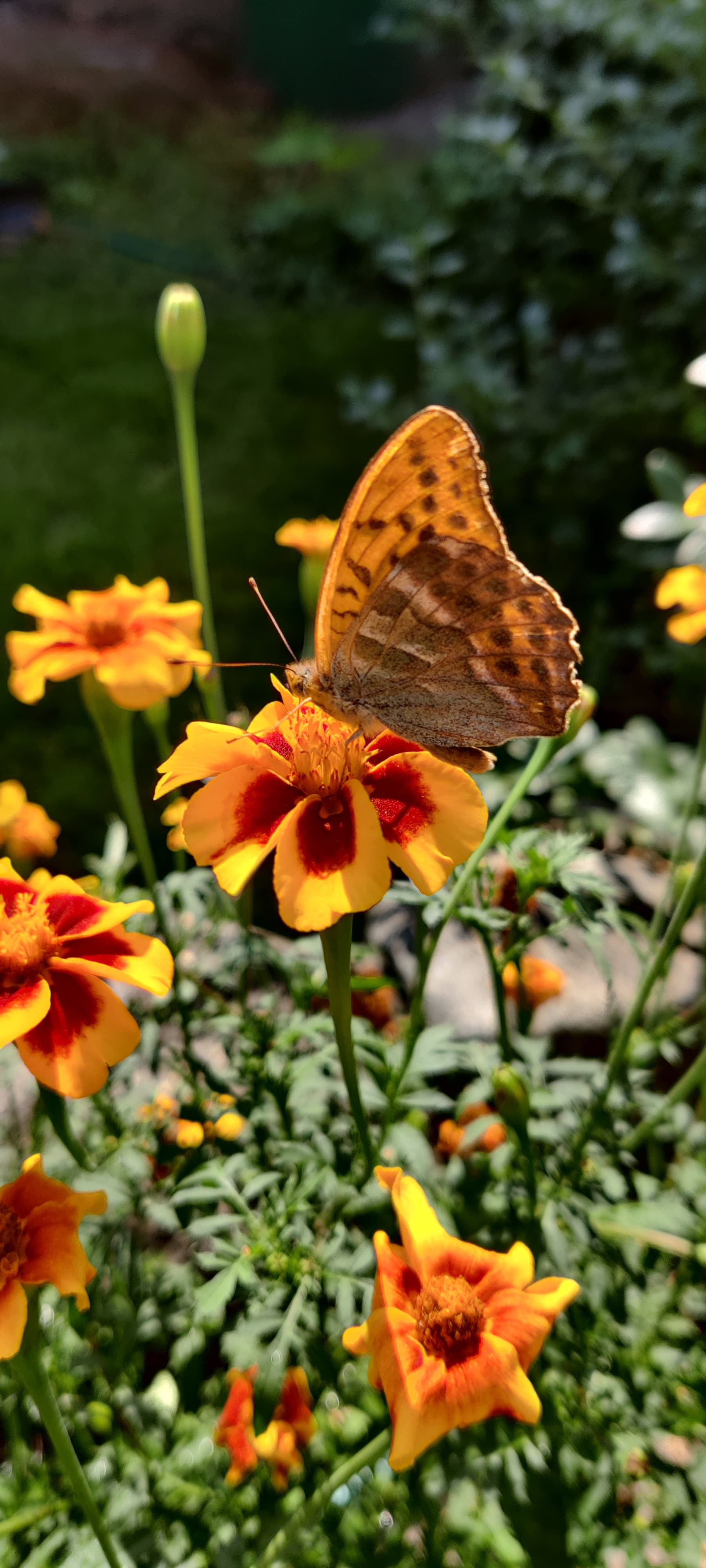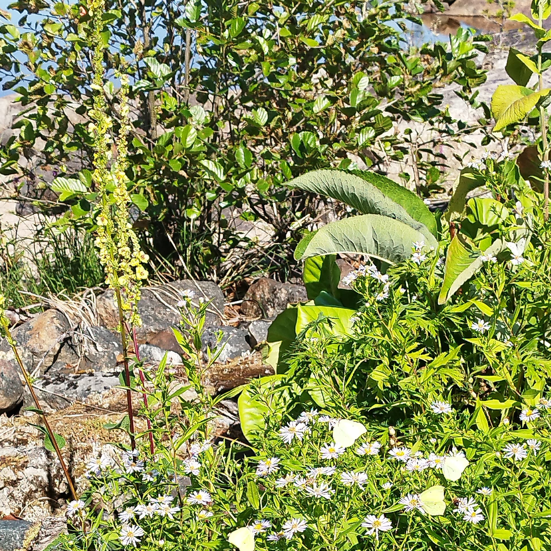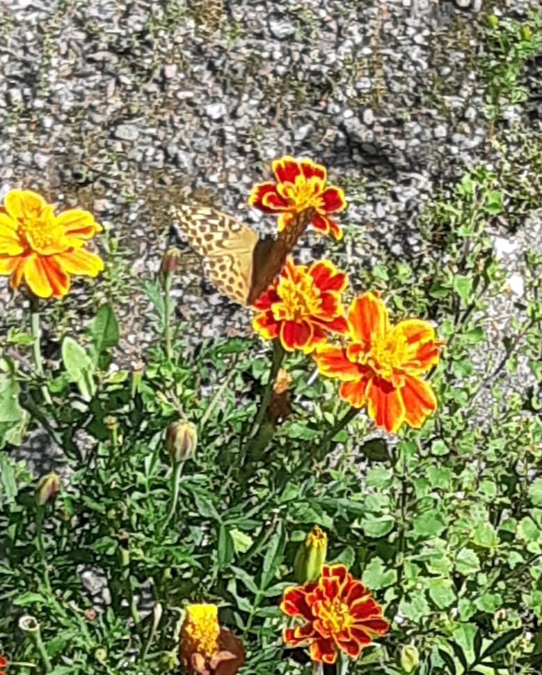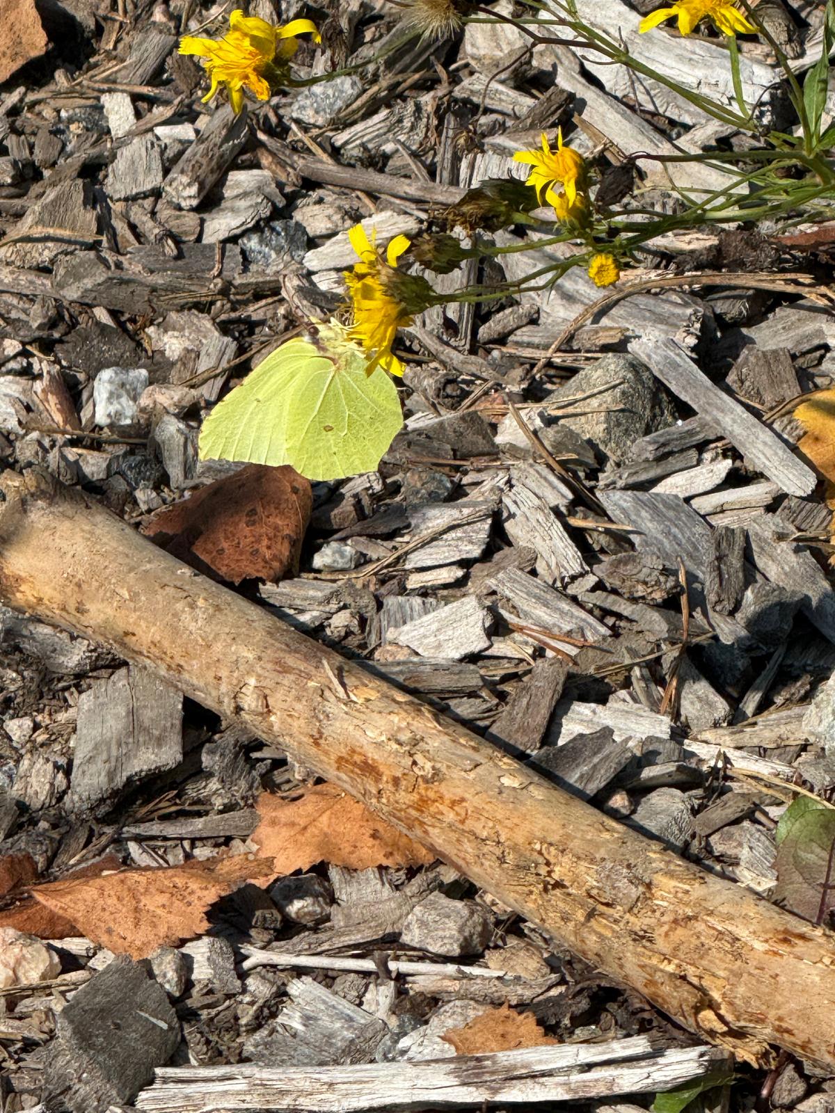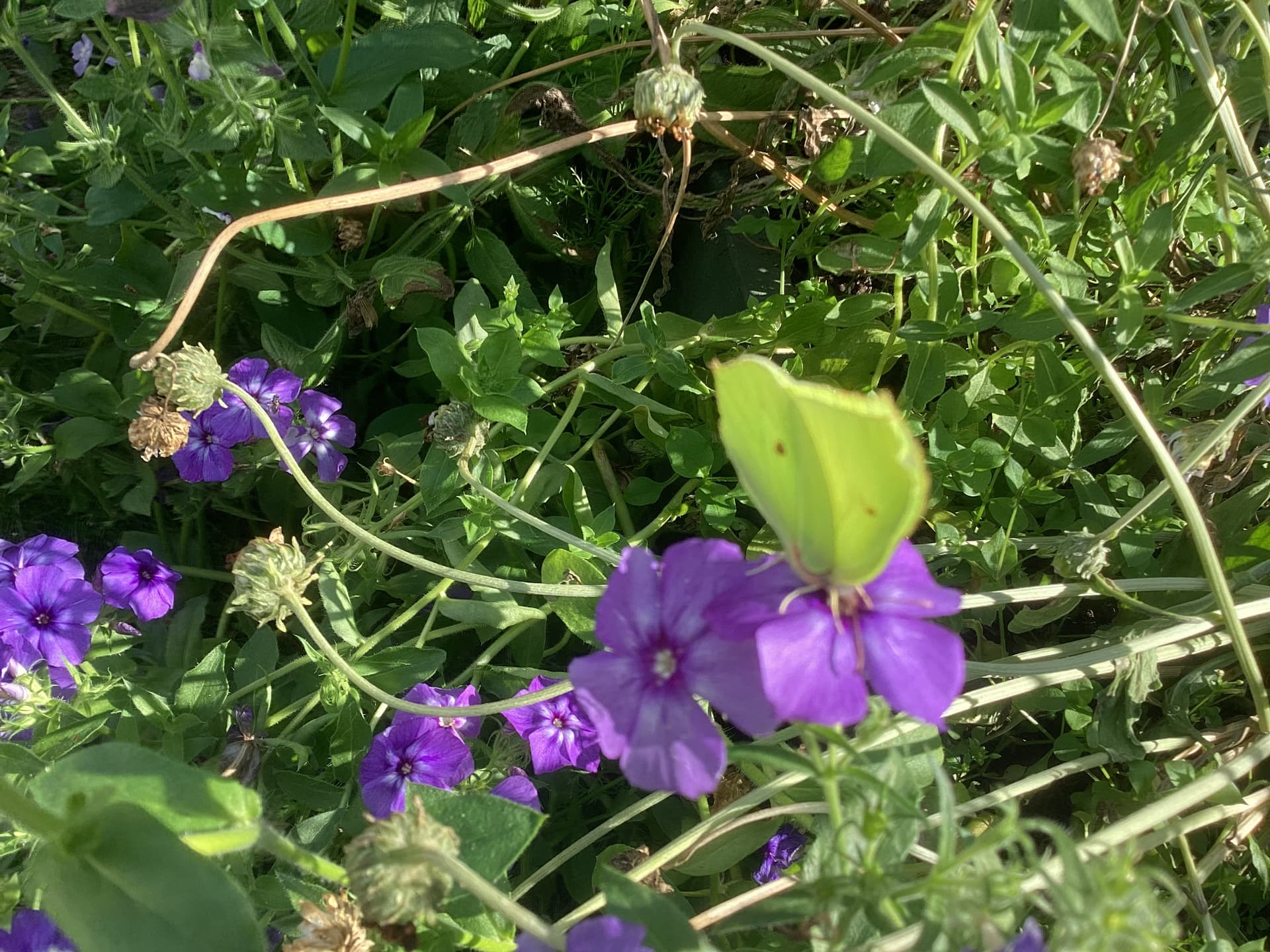 Ainakin 9 sitruunaperhosta, kaaliperhonen ja erilaisia pöriseviä kimalaisia.