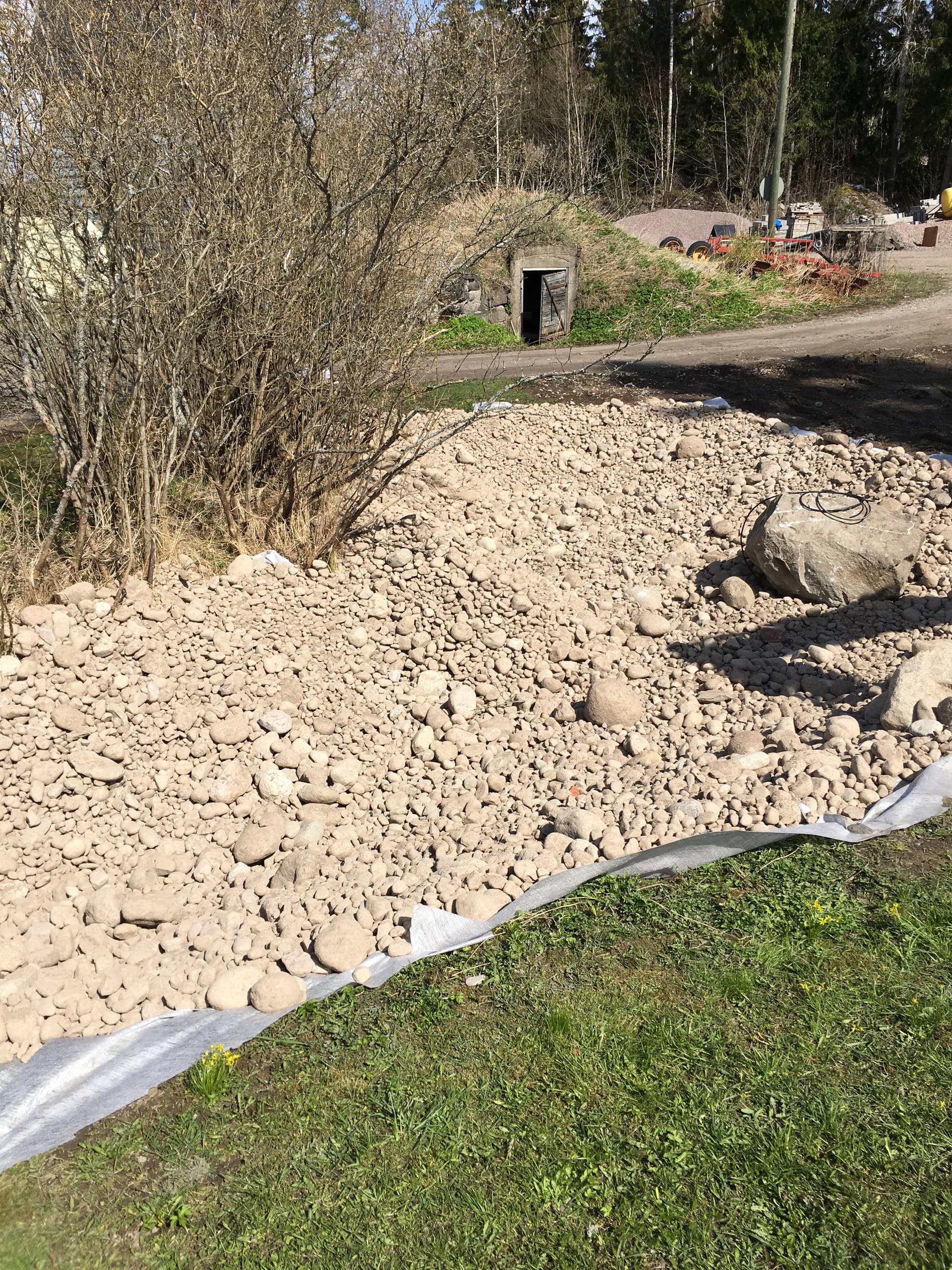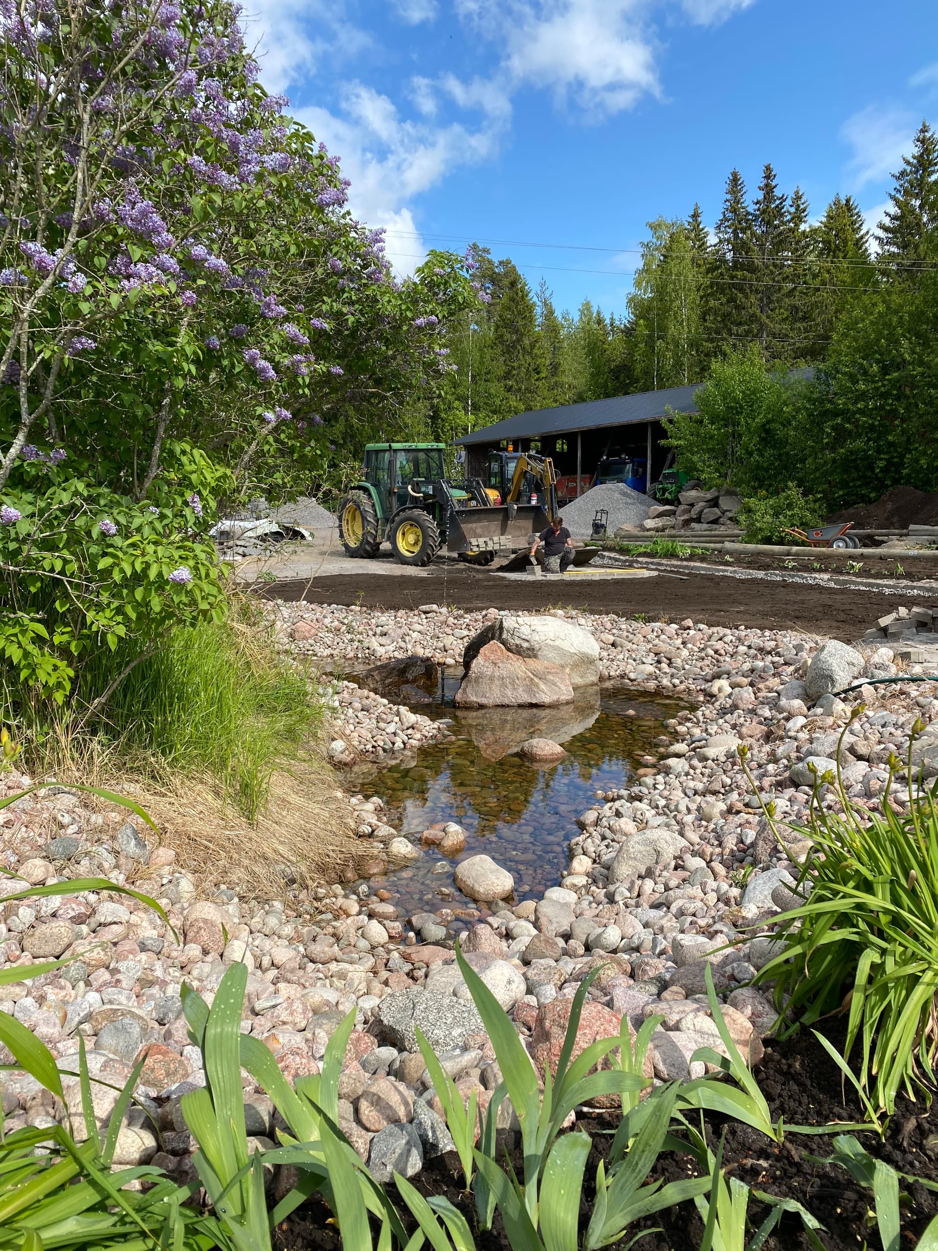 Lammen pohjaan laitettiin juurikangas ja kiviä. Tässä kuvaa ennen veden laittoa: