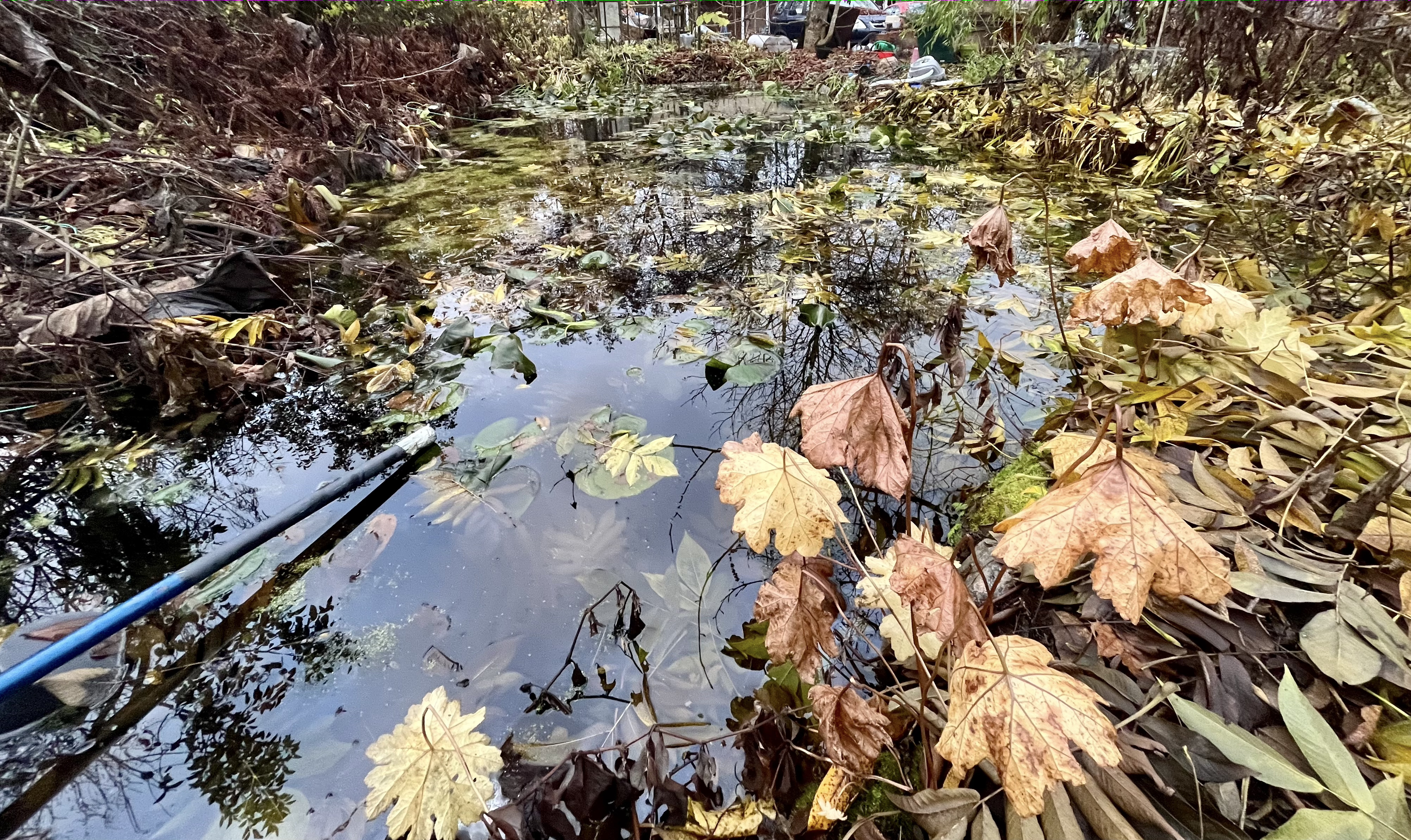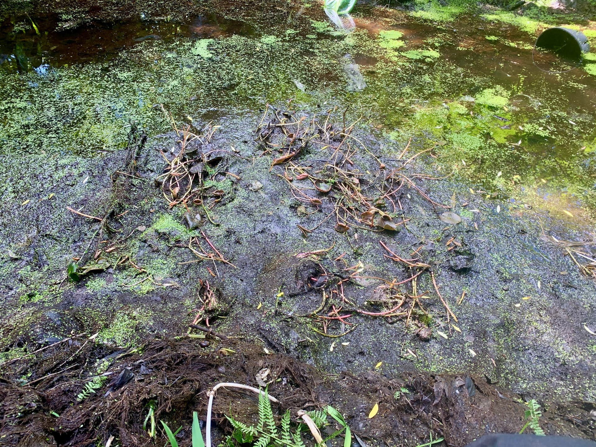 Oks toi nyt pihalampi, vai lammikko pumpulla vedet maahan ja rojukasvit piti repii, pohjasta irti. 5 kottarillista niitä tuli. Likaista ja haisevaa puuha thyi, olkoon