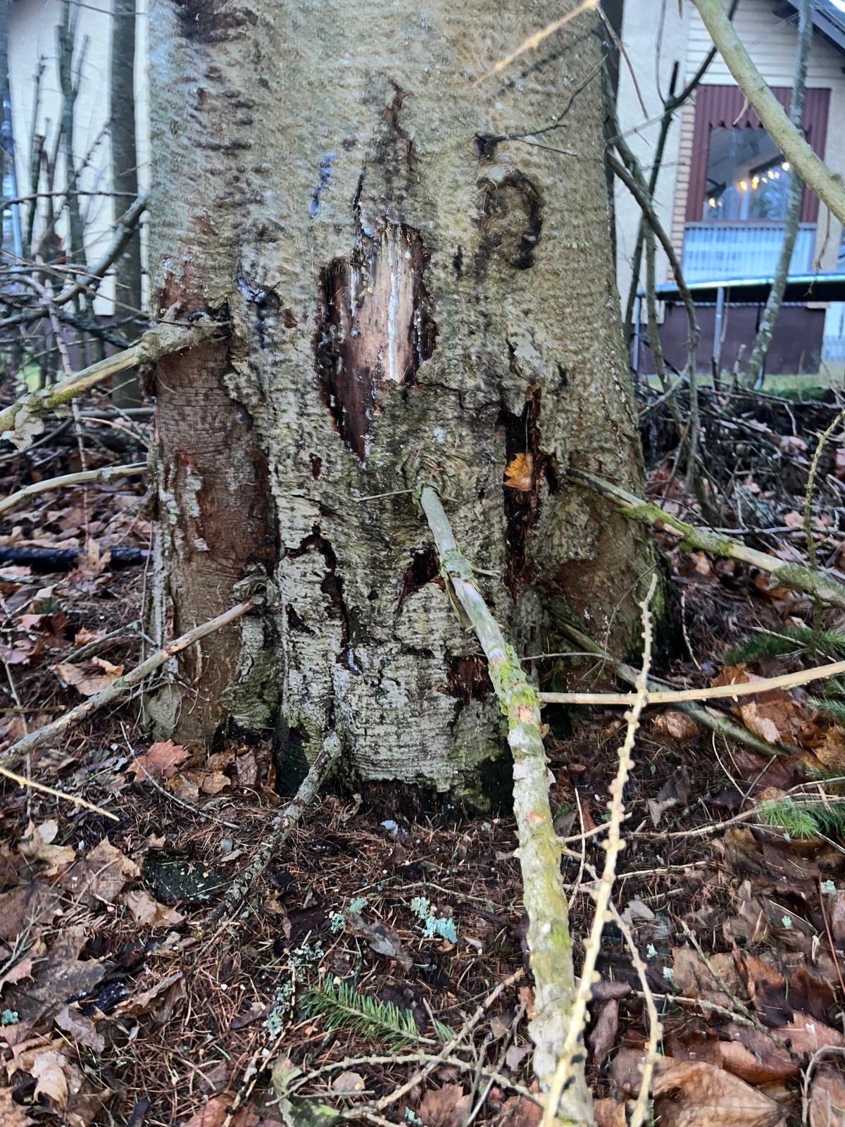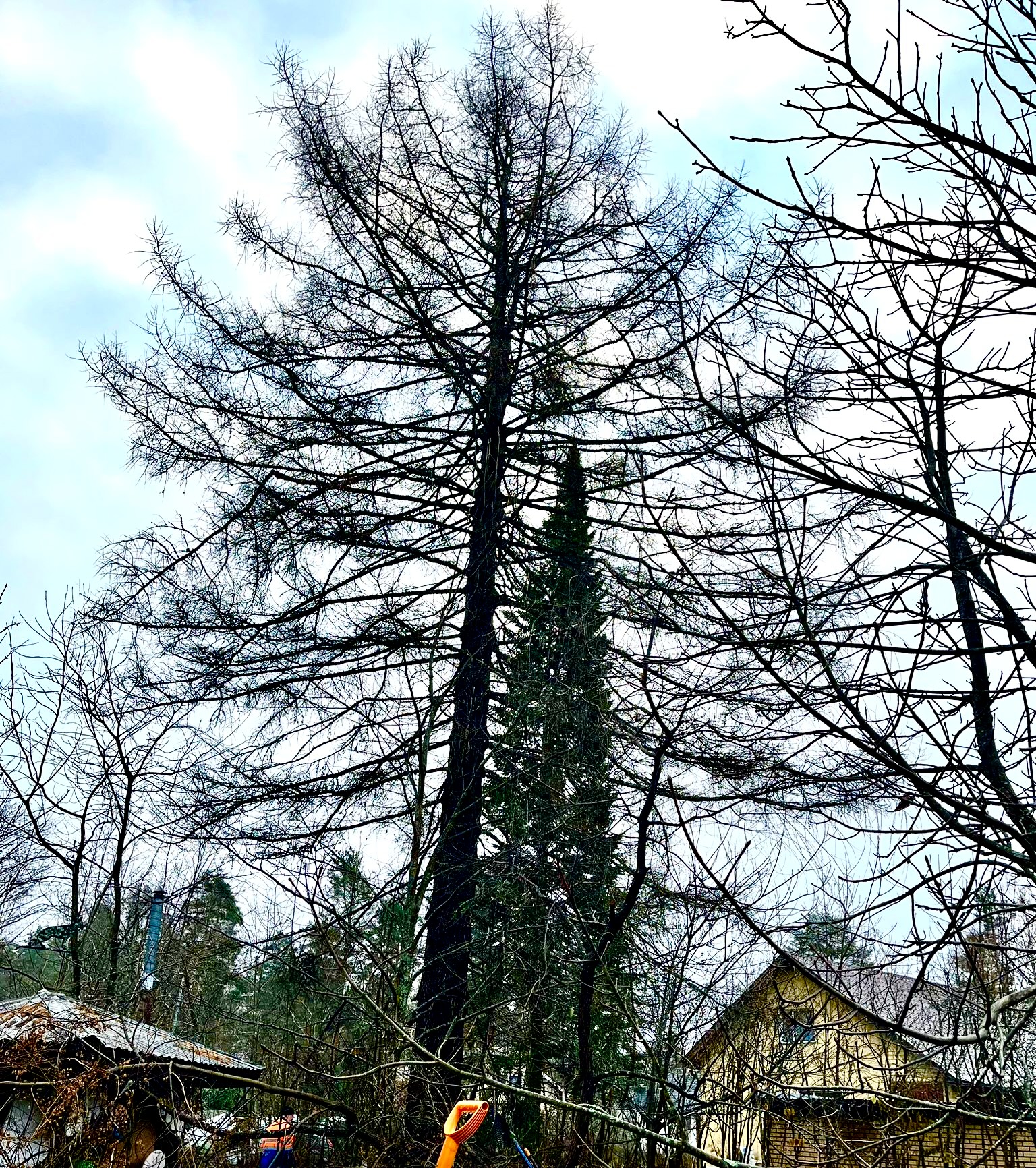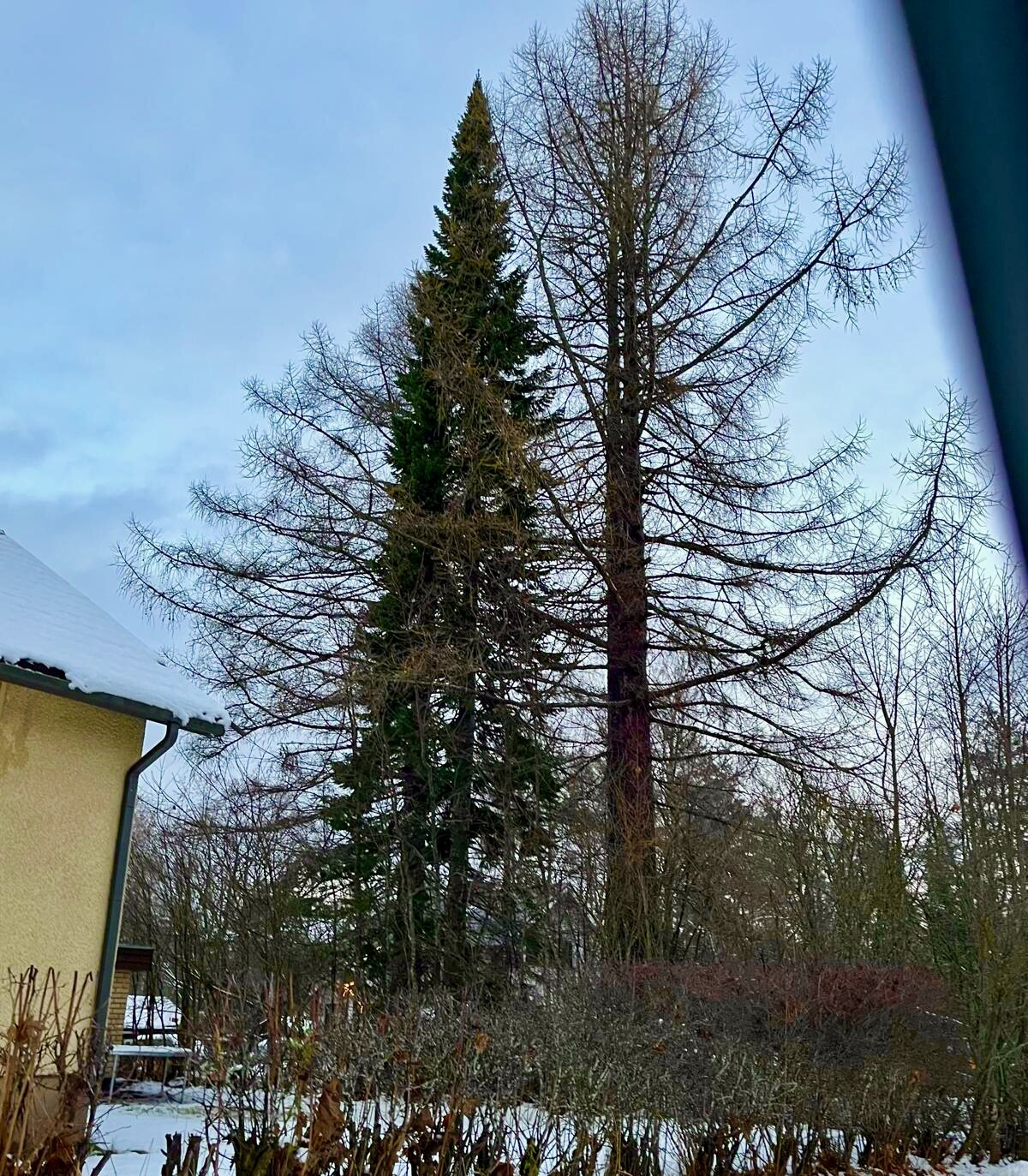 Naapuri pelkäsi sen kaatuvan heidän talonsapäälle, kun siiinä on ilmeisesti ollut tuholaisia tms. Vieressä kasvo aiemmin kolme isoa Siperian lehtikuusta myös. Nyt tuo yksinäinen pihta oli al