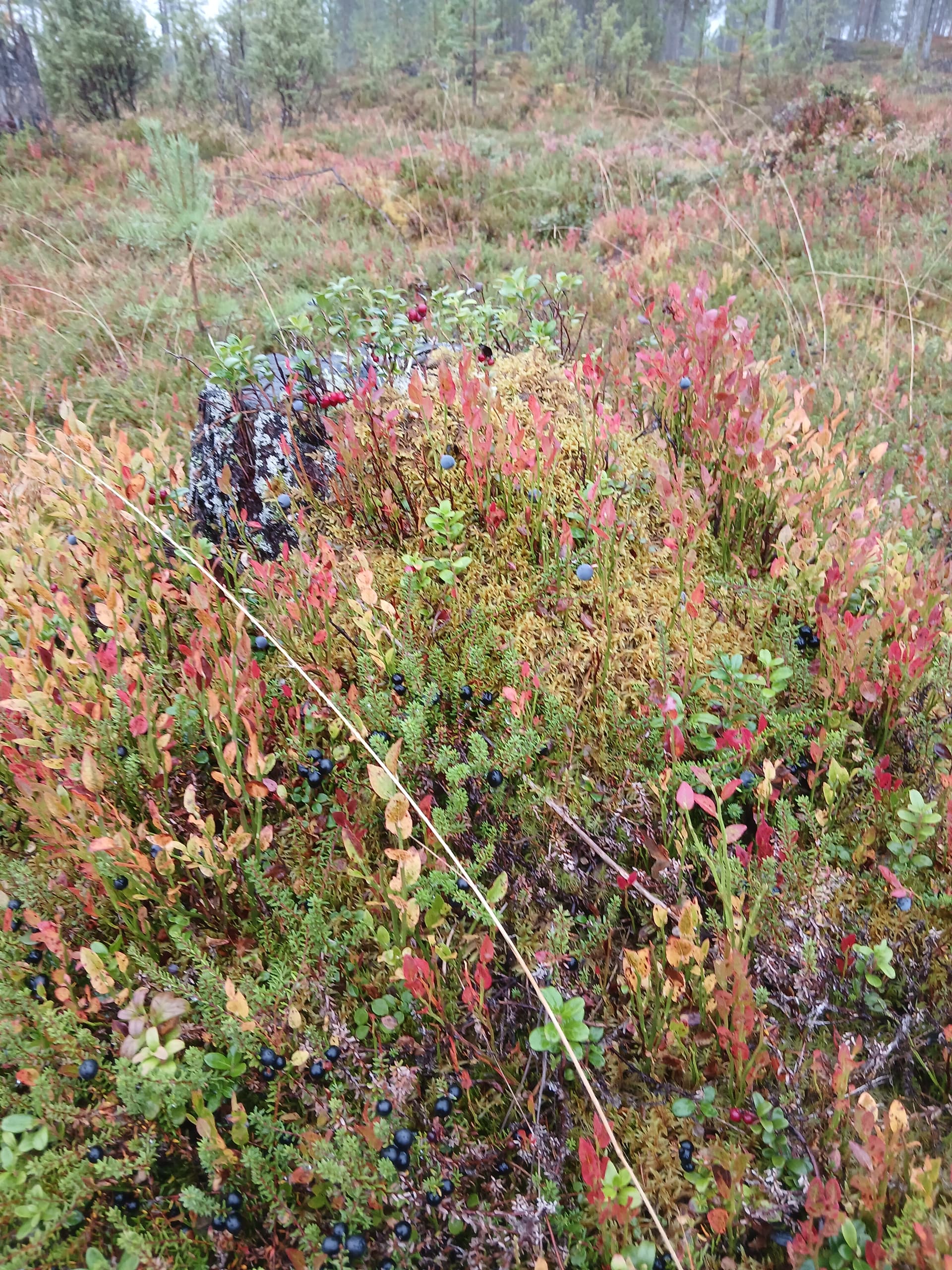 Pari tuntia kevyessä vesisateessa. Että mie tykkään rauhallisesta kävelystä kauniissa metsässä. Samalla voi napsaista suuhun mustikan sieltä, toisen täältä.