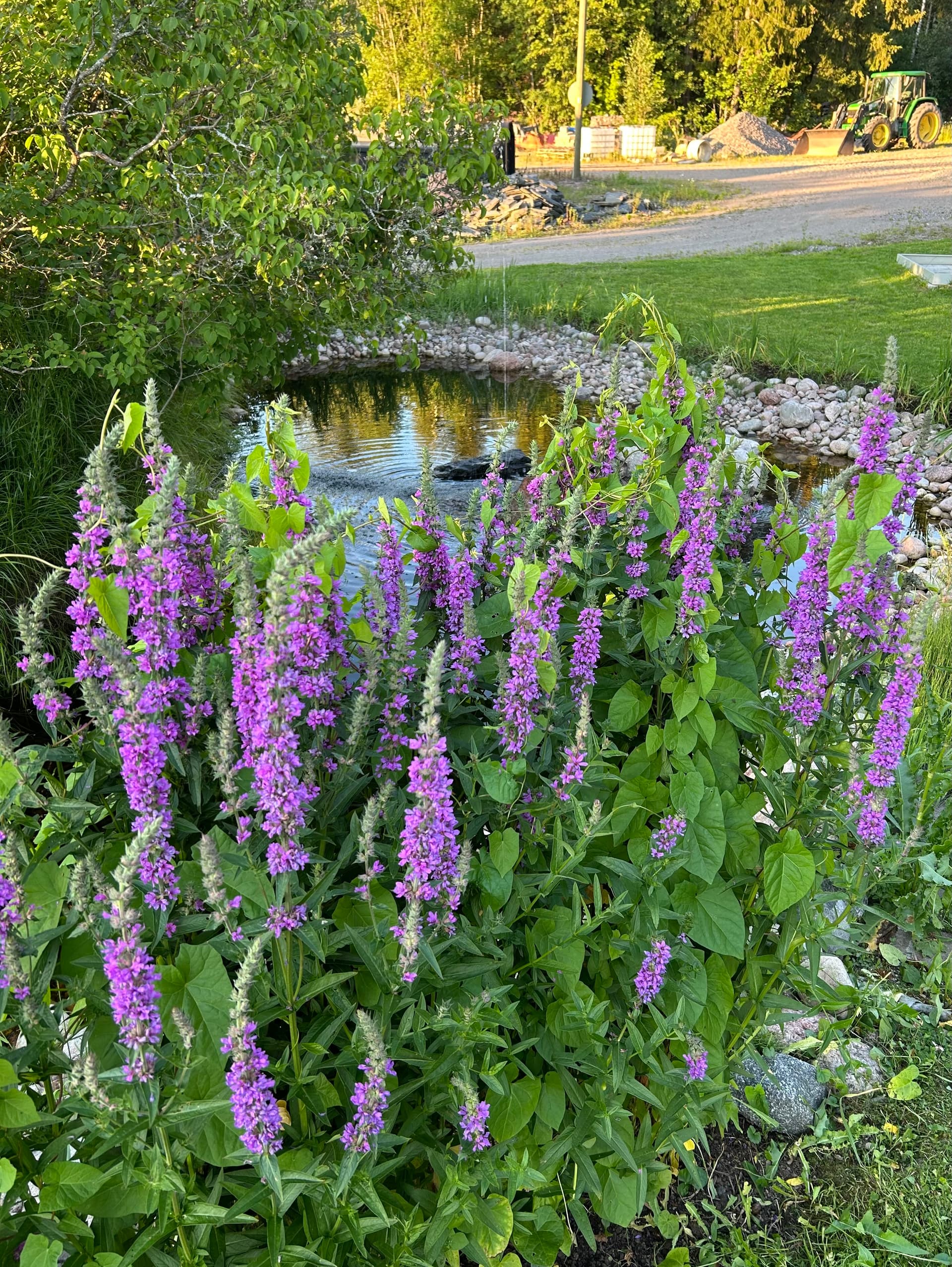 Tässä mun rantakukkia. Meillä on tällainen pieni lampi ja sen rannalle olen istuttanut ojanvarsilta kaivettuja rantakukkia. Puska tuuhenee vuosi vuodelta.