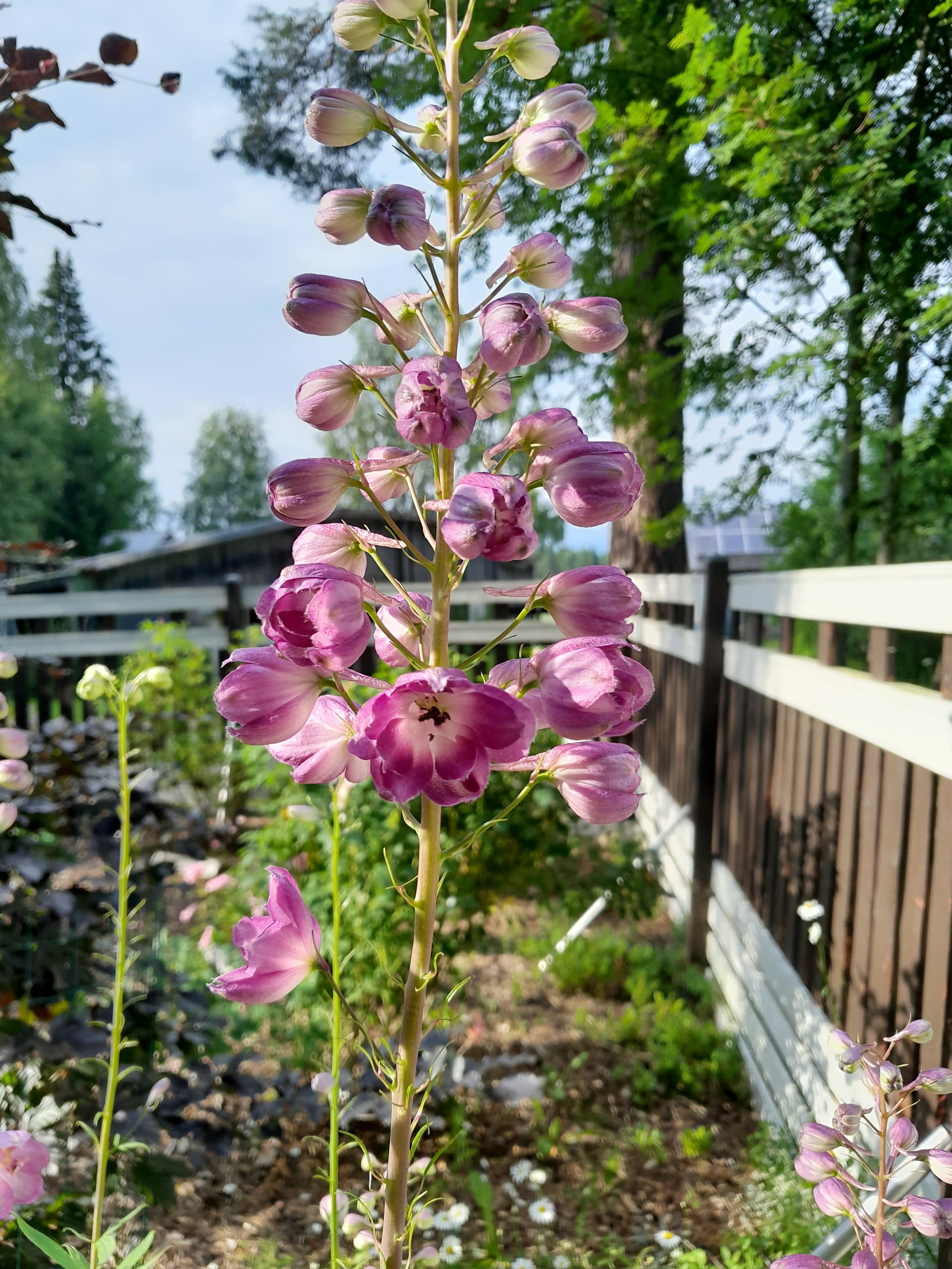 Meillä Helsingissä ihme kyllä ritarit eivät olleet Ulla-myrskystä millänsäkään! Uusia kukkavanoja puskee, nämä on kaikki eri värisiä! Ihanaa! Keneltä nämä taimet nyt oli?