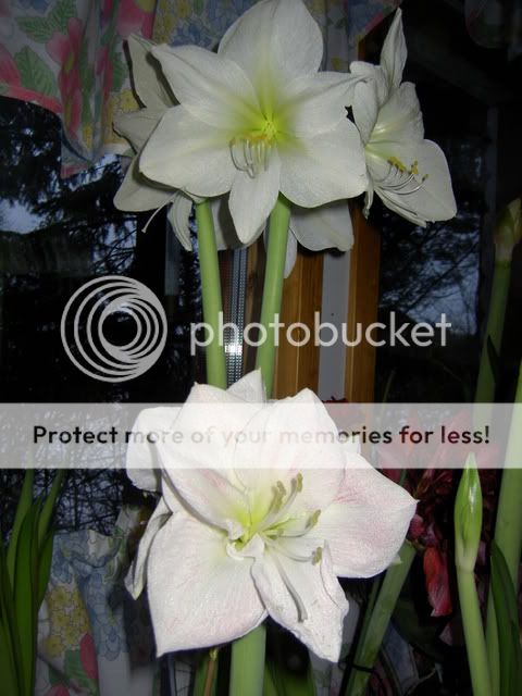 Tänään muuten ostin valkoisen amarylliksen sipulin alesta, maksoi 2.50, nyt on liossa josko laittais kohta multiin.