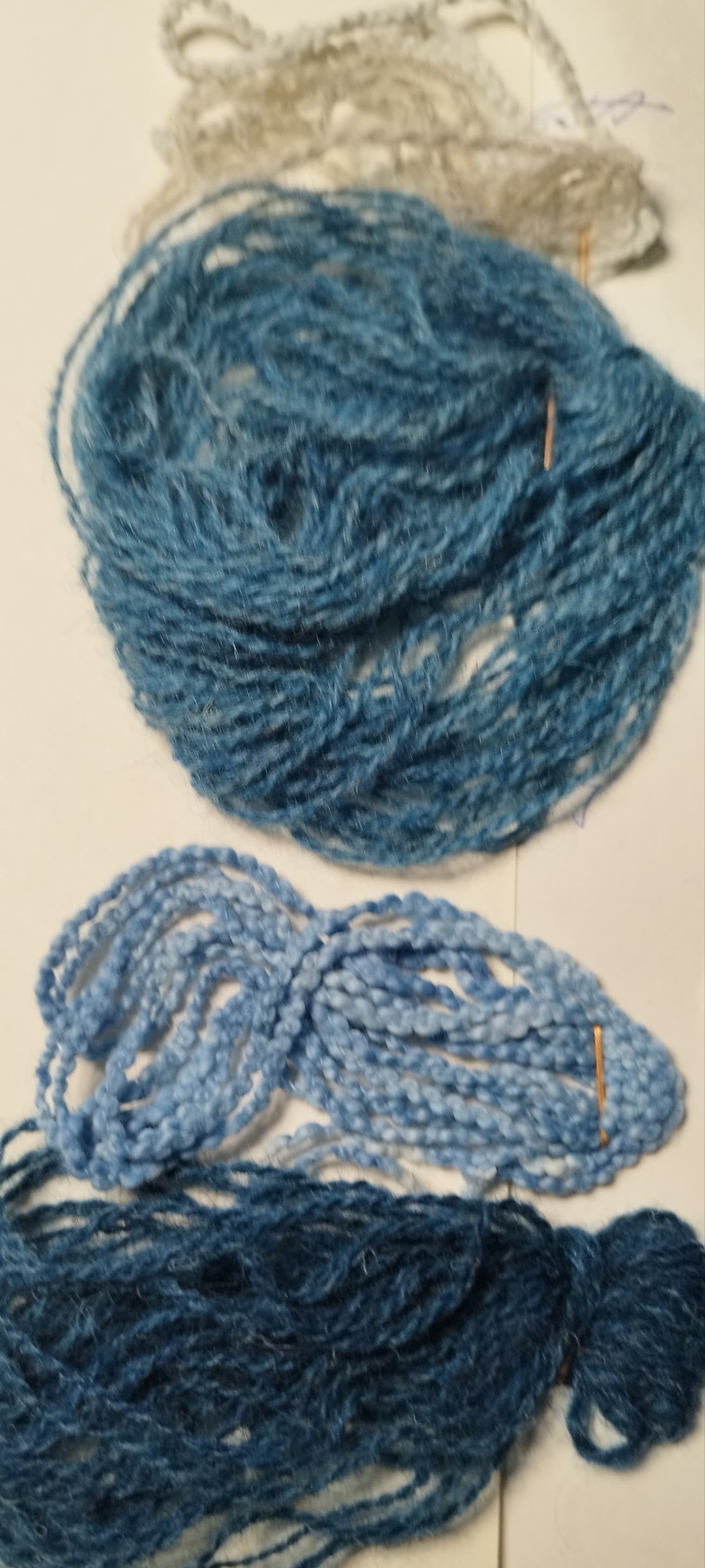 Valkoisesta langasta +keltainen verilipeäsuola vaaleaa, harmaa lanka + punainen verilipeäsuola tummempaa. Tuo ruskea on hernekuukusella värjättylanka