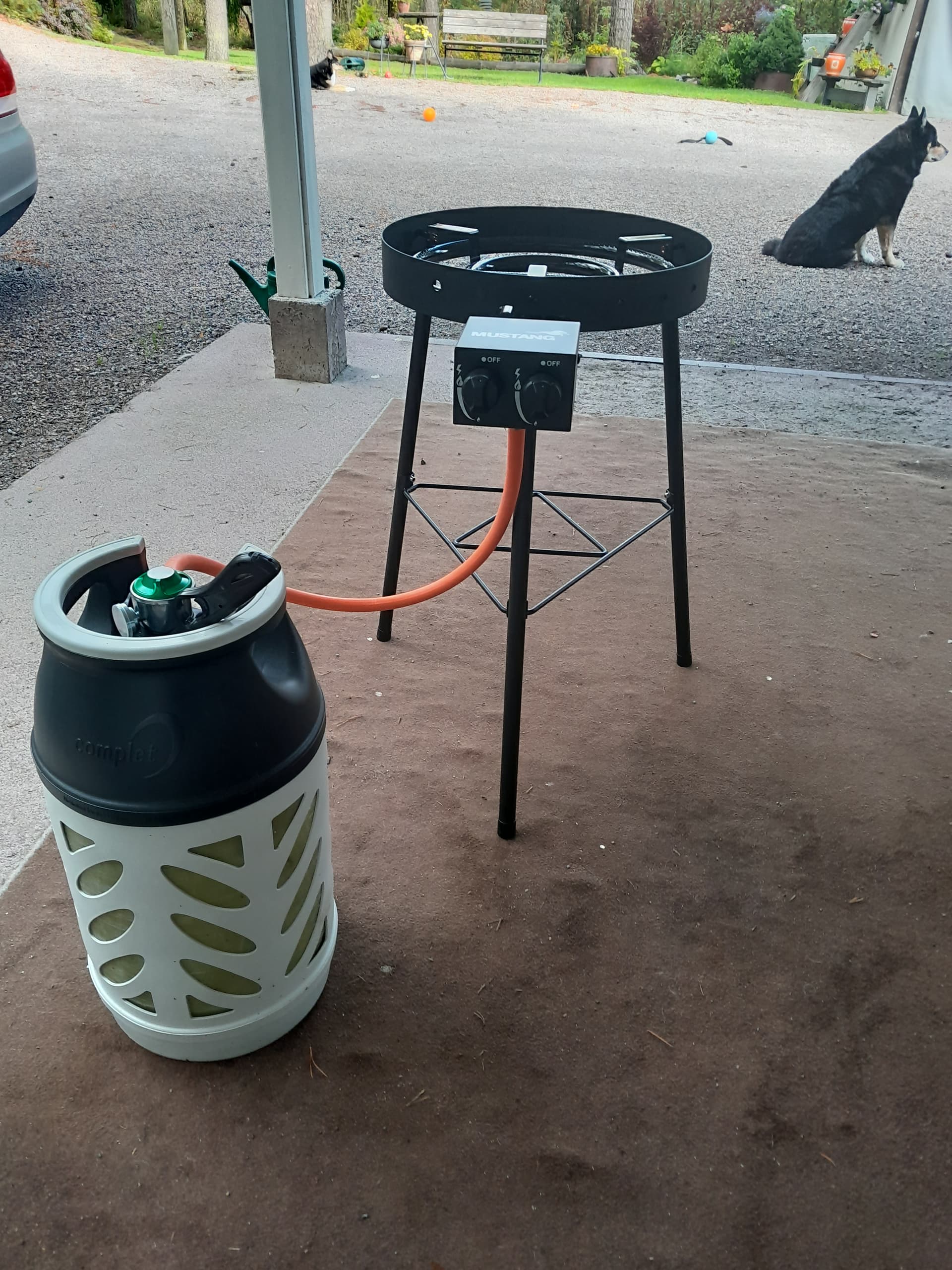 Rengaspolttimolla kaasulla keitin 5 kg kärpässieniä, huomenna toiset 5 kg. Meillä joku pyöritteli silmiään kun sienisaslista punnitsin “poimi vain sieniä jotka tunnet”, Mökillä oli kuin olikin punaista ja keltaista taikasuolaa, ohjekansio taas on kotona.