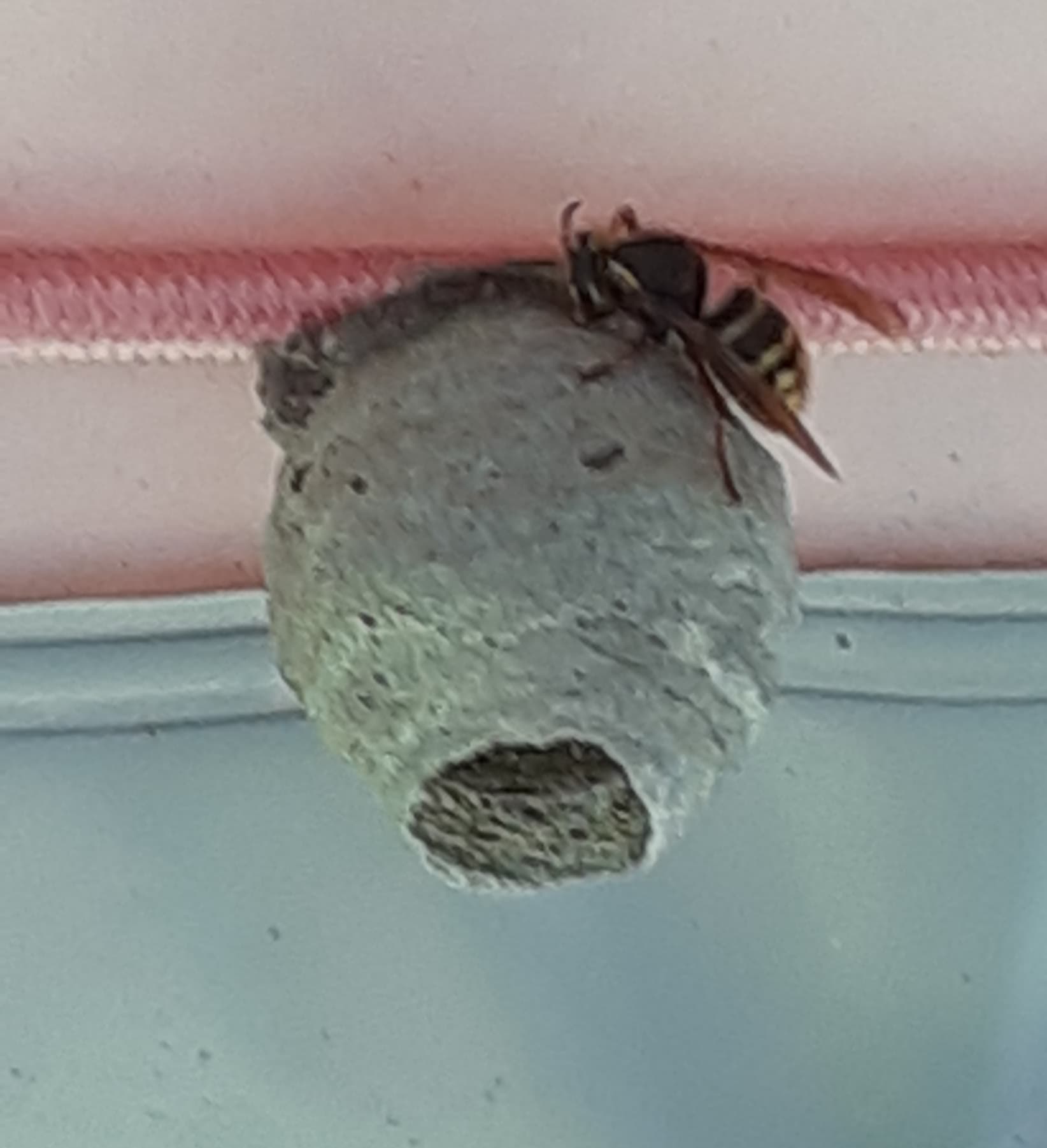 Meillä pörriäinen rakentaa kotia keinun kattoon. En raski häätää pois. Sovittiin ettei hän pistele minua.
