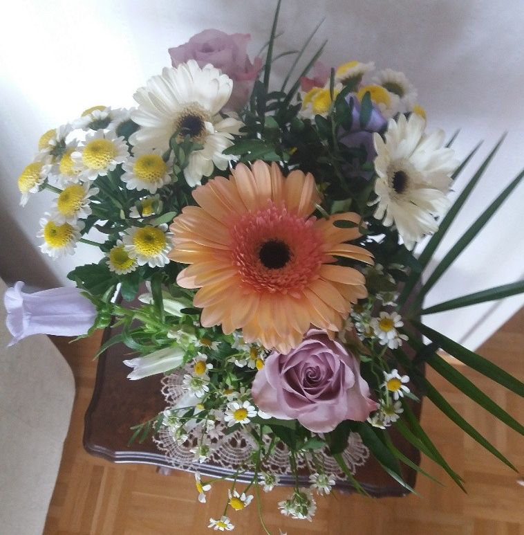 Ennen oli kukkakaupat, ja niissä floristi sitoi kukkakimput asiakkaalle. Nyt hankitaan kukat tavarataloista, joissa ne ovat valmiiksi koottuja. Täytin pyöreitä, ja sain monta erilaista kimppua. Sekaisin ovat niin ruusut, kuin päivänkakkarat ja kaikkea muuta mahdollista. Ikävä kyllä, ne rupsahtavat todella nopeasti.