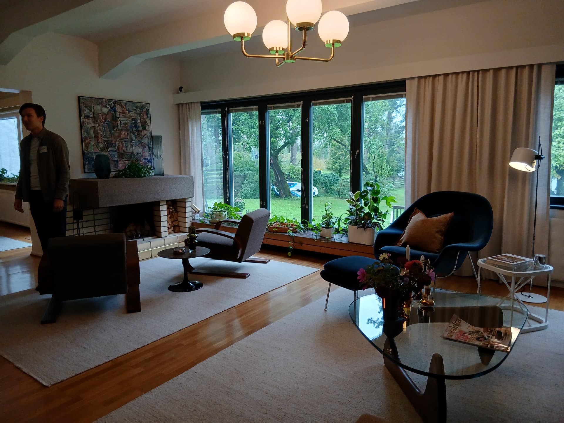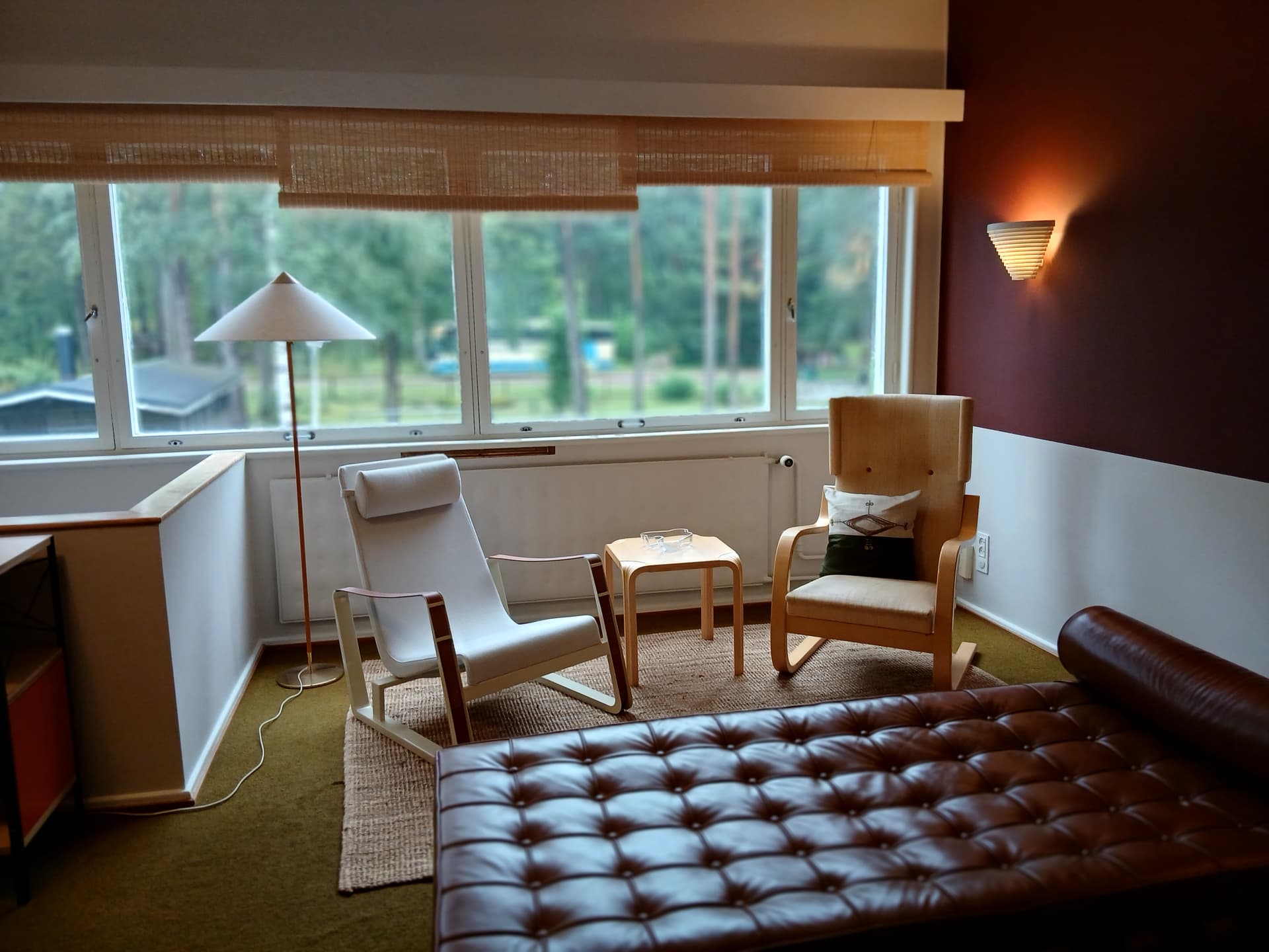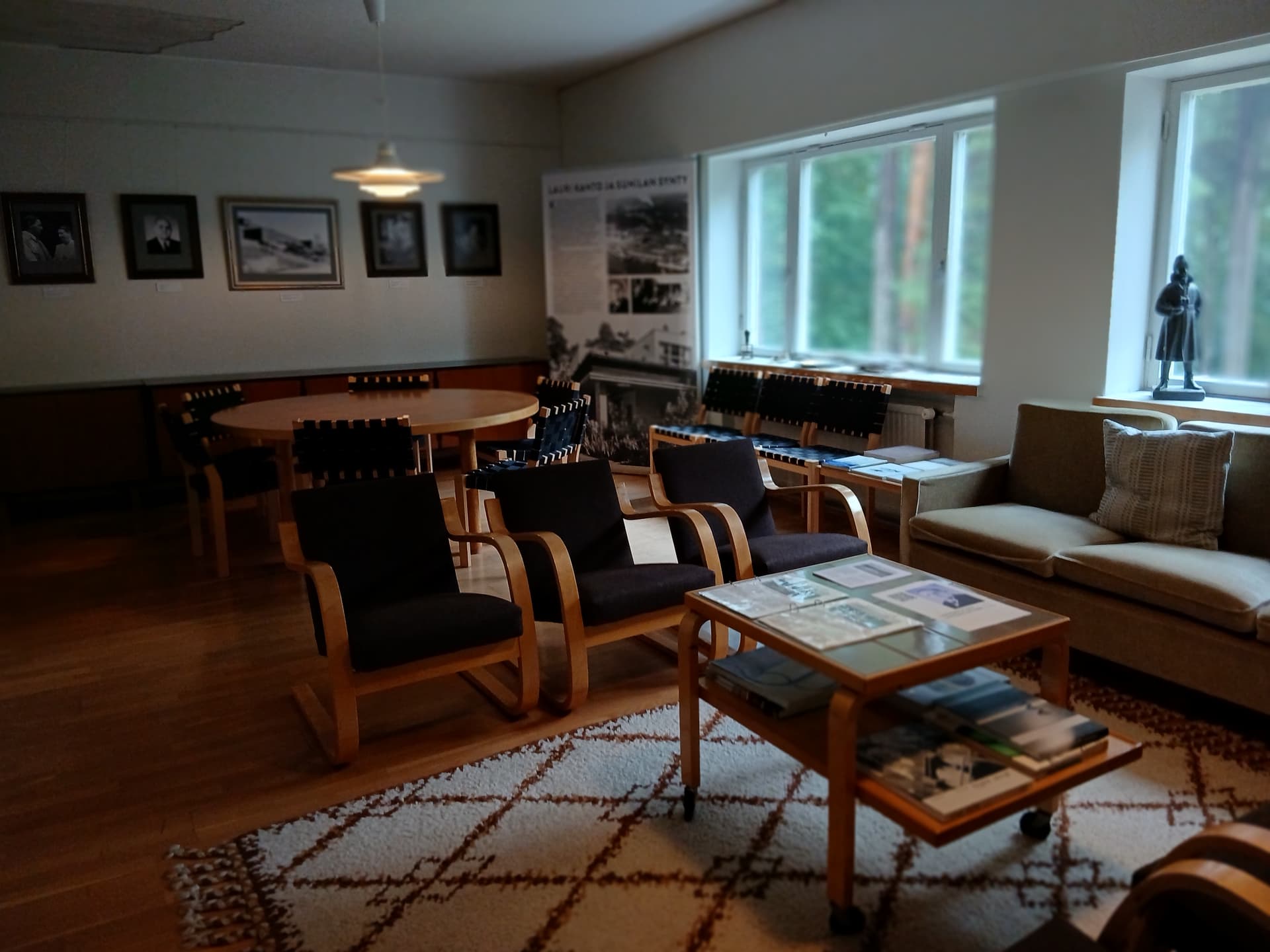 Kiersin Aallon suunnittelemassa tehtaan työntekijöiden asunnoissa. Pienin 19 neliötä, isoin oli johtajan talo. Että oli hienoja persoonallisia koteja.