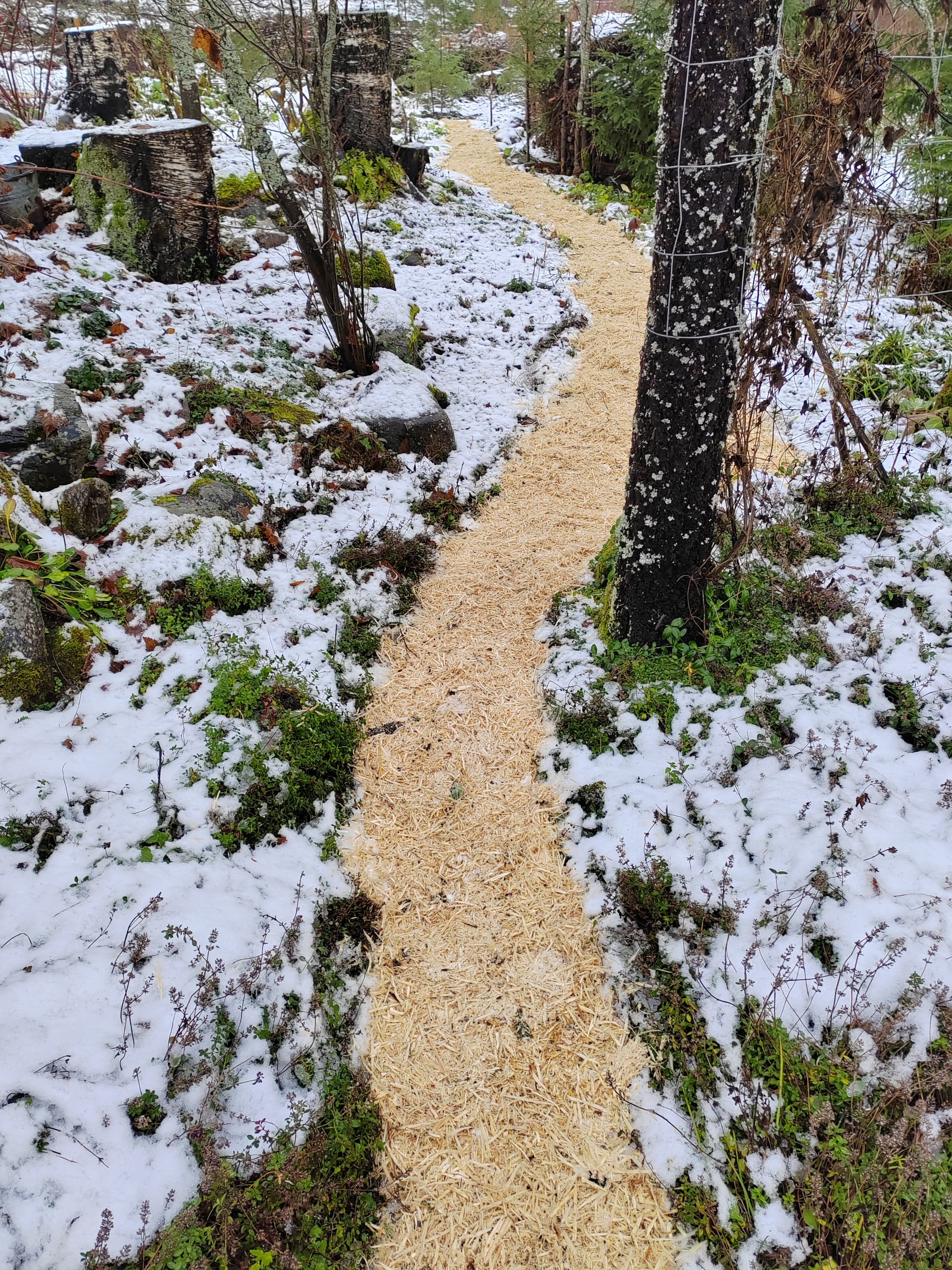 Isäntä kuorrutti liukkaita kiviä polullani että voin kävellä vähän liukkaammallakin kelillä. Sanoi palkitsevansa aamuisen hiusten leikkuun. ![]()