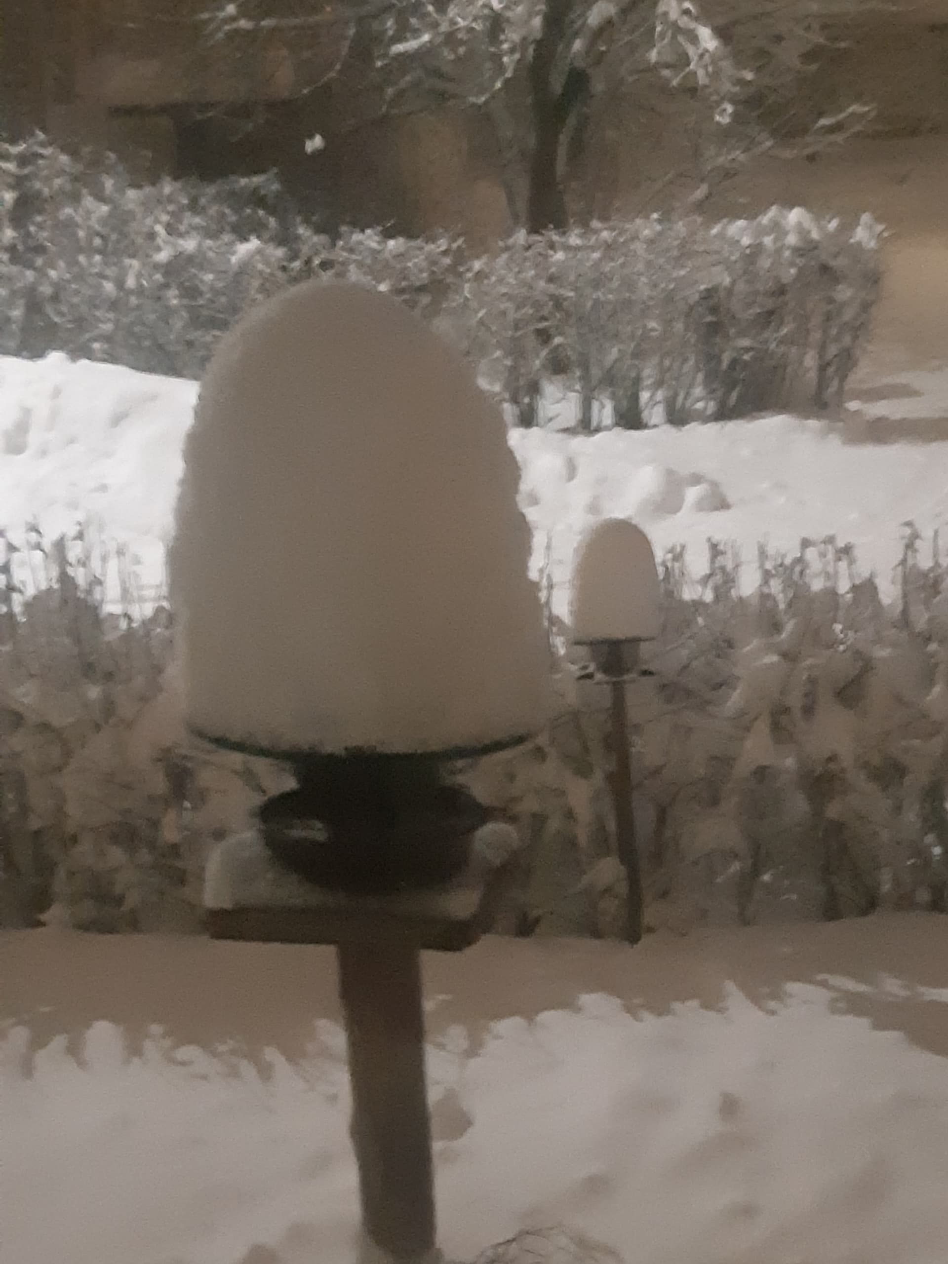 Isäntä on ulkona linkoomassa lunta kun yön aikana oli tullut 10 cm lisää, hän linkosi ilta kahdeksan aikaan ja nyt jo uusinta. Tuumattiin ettei varmaan kauaa jaksa tätä touhua kun kummallakin on jo nyt terveydellisiä rajoitteita. Nurmikon leikkuu pitää ulkoistaa varmaan robotille…milloinkahan trimmerin saisi kauko ohjattavaksi ???