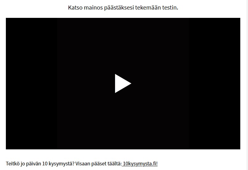Ei tuu aina mainoksia, pääsee silloin suoraan testiin. Tuo teksti tulee aina, vaikka ei olis mainostakaa. Minä kokeilen kaikkea testejä mitä eteen tulee. Ovat mukavia tehdä.