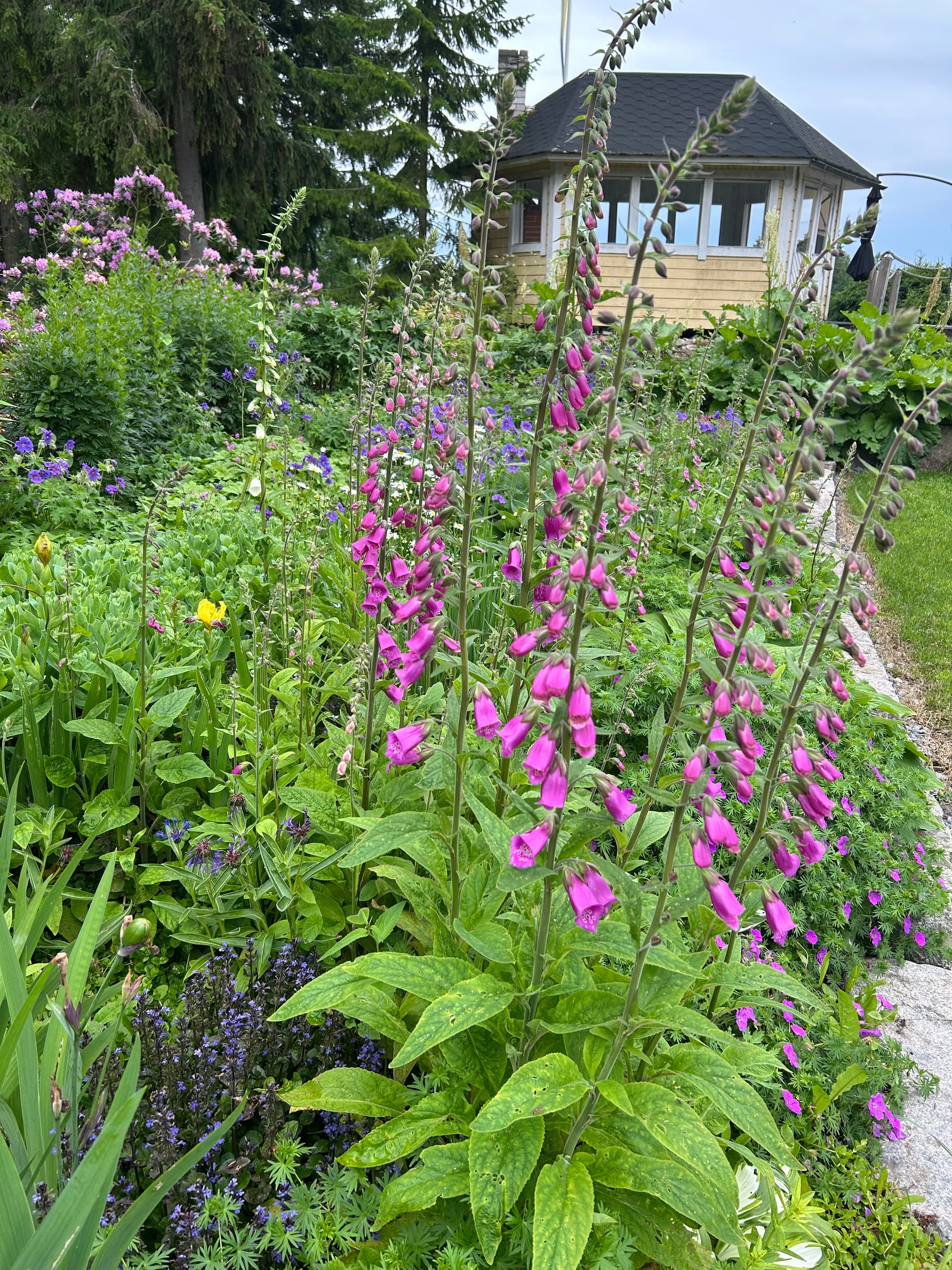 Se on jännä, miten huonoissa paikoissa sormustinkukka viihtyy. Mullahan kylväytyi viime kesänä kivetykselle, jossa juurikangas alla, eli tuossa ei ole mitään multaa: