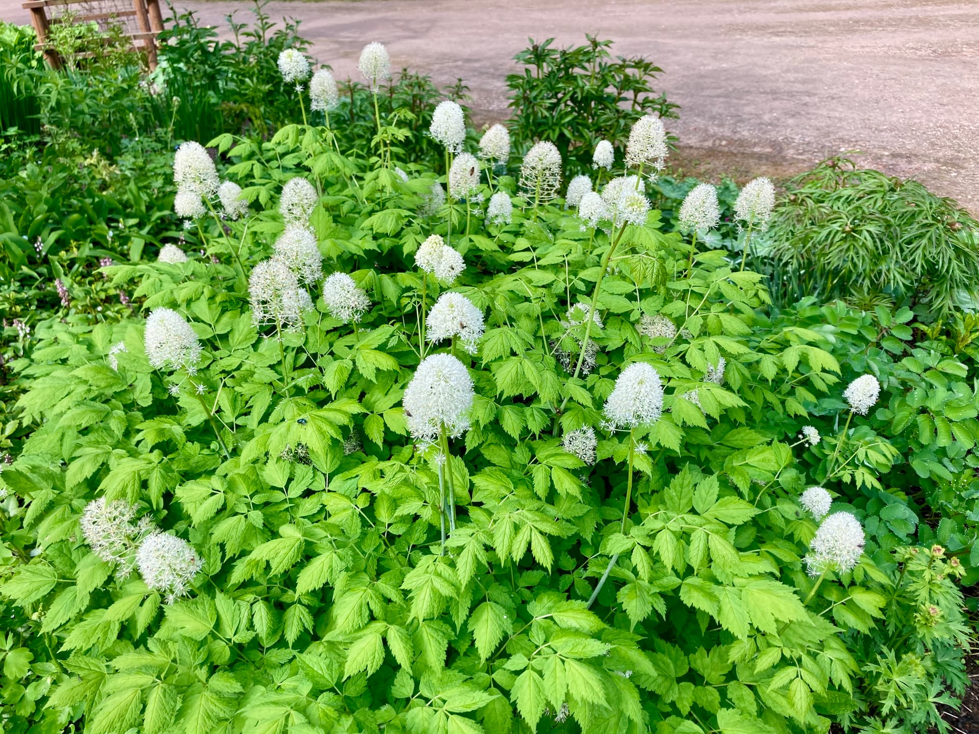 Doorianvillakko, valkea kaihonkukka, vaalea tähtiputki, kolmea sorttia kuunliljaa(matalia), tarhavarjonhiippa, preeria-angervoa, vihreälehtistä rotkolemmikkiä.