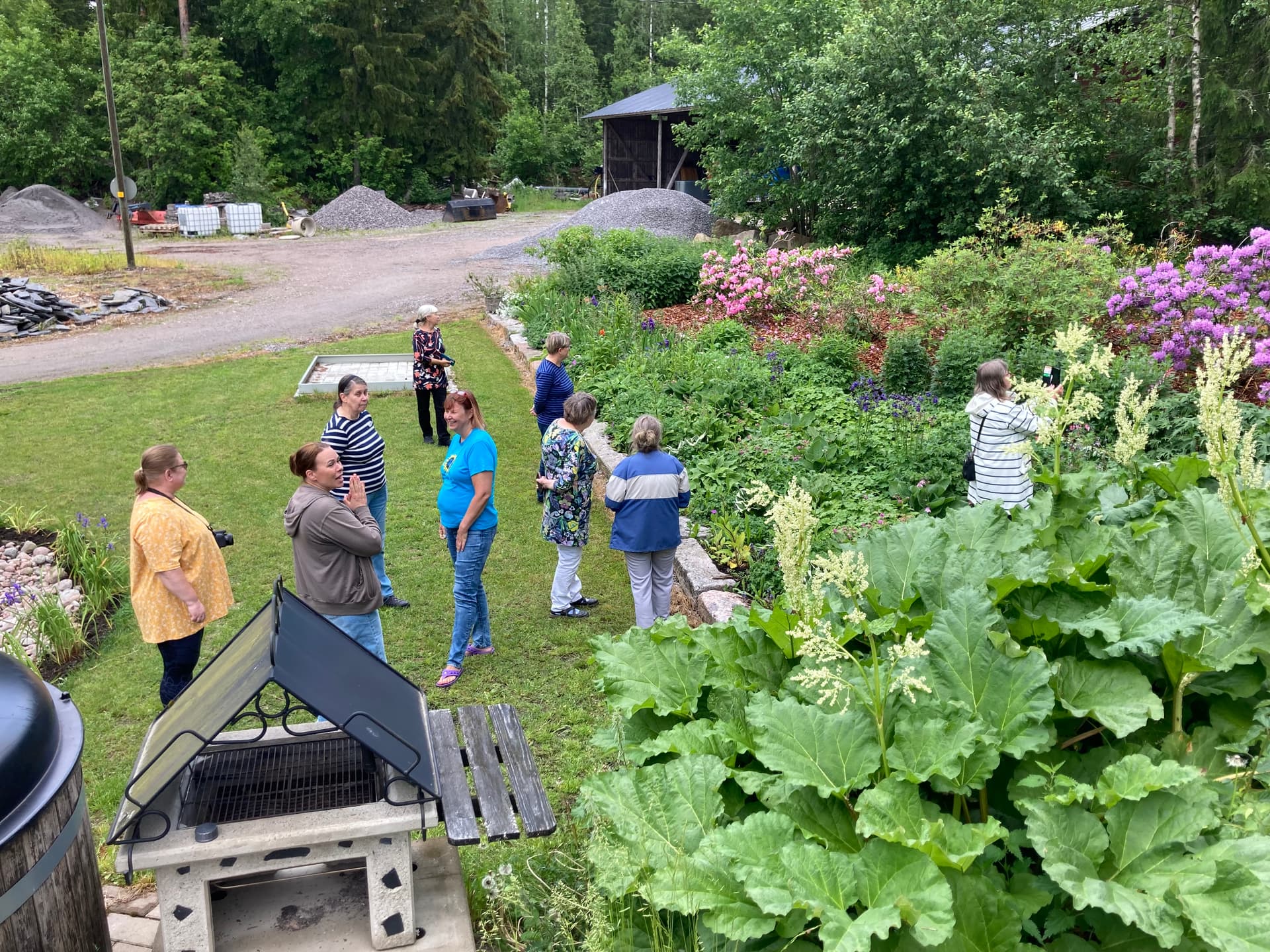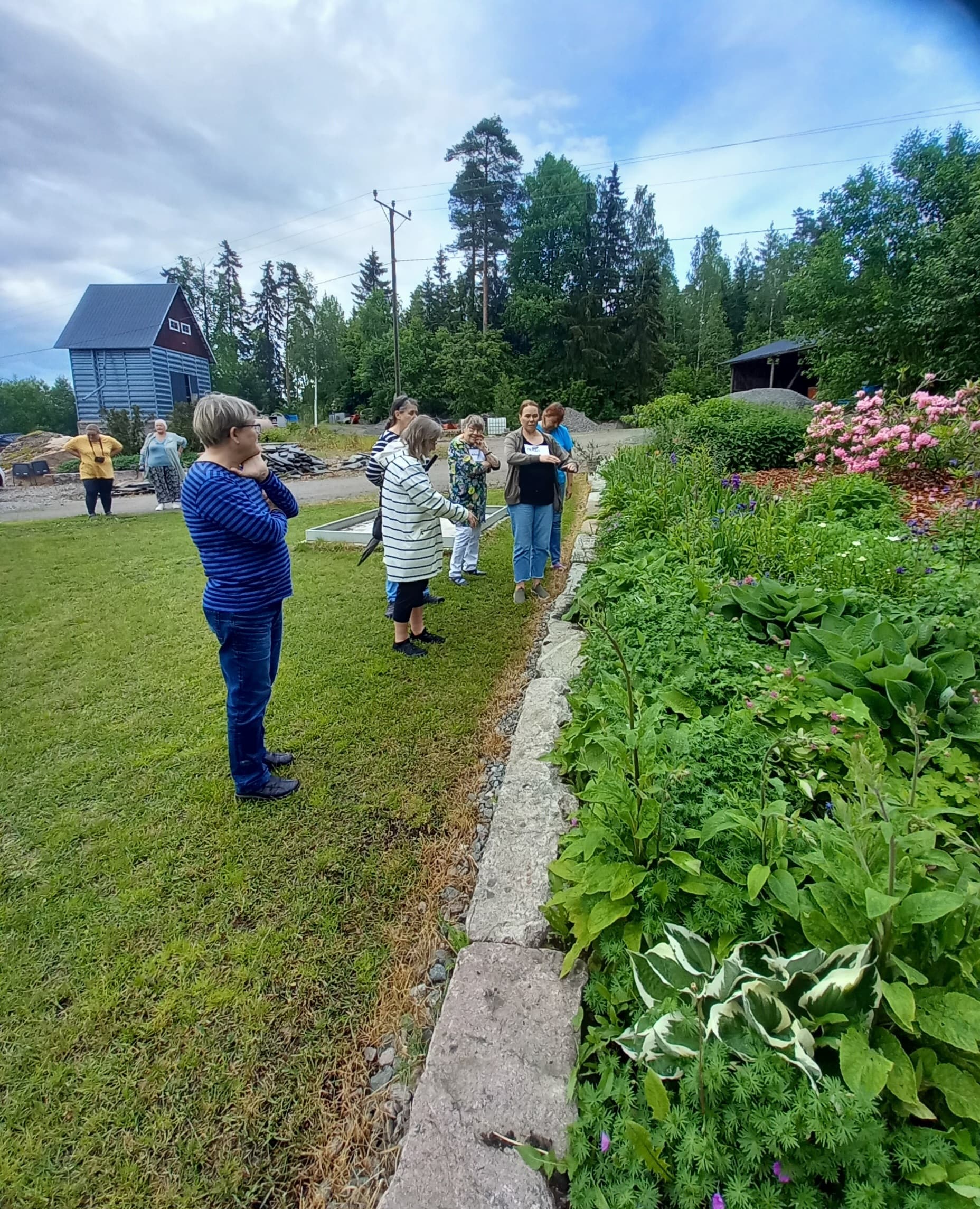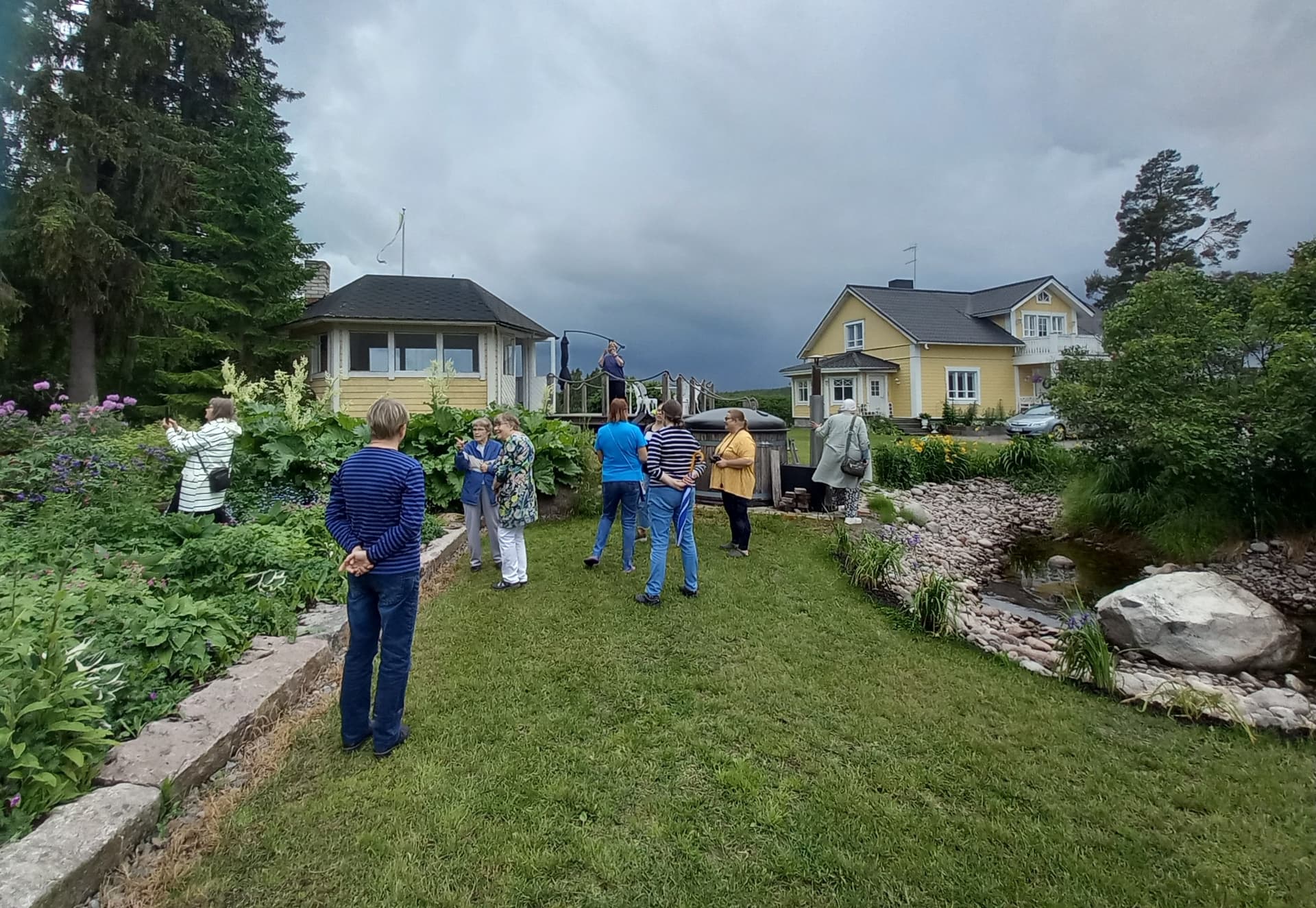 Tooodella rankat sateet ukkosineen edelsi meidän tapaamista mut kappas vaan, kun sovittu aika koitti ja autot pihaan kurvasivat niin sateenvarjoja ei tarvittukaan, saimme aurinkoisen vastaanoton niin emännältä kuin luonnolta