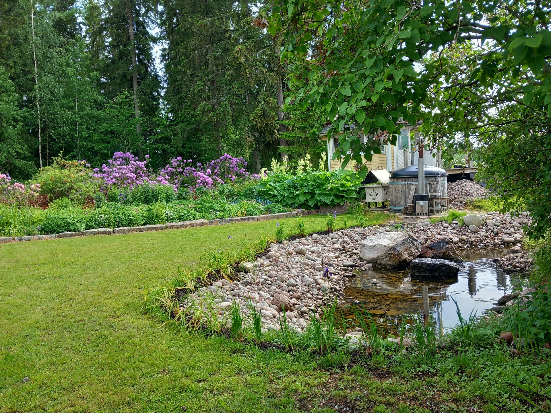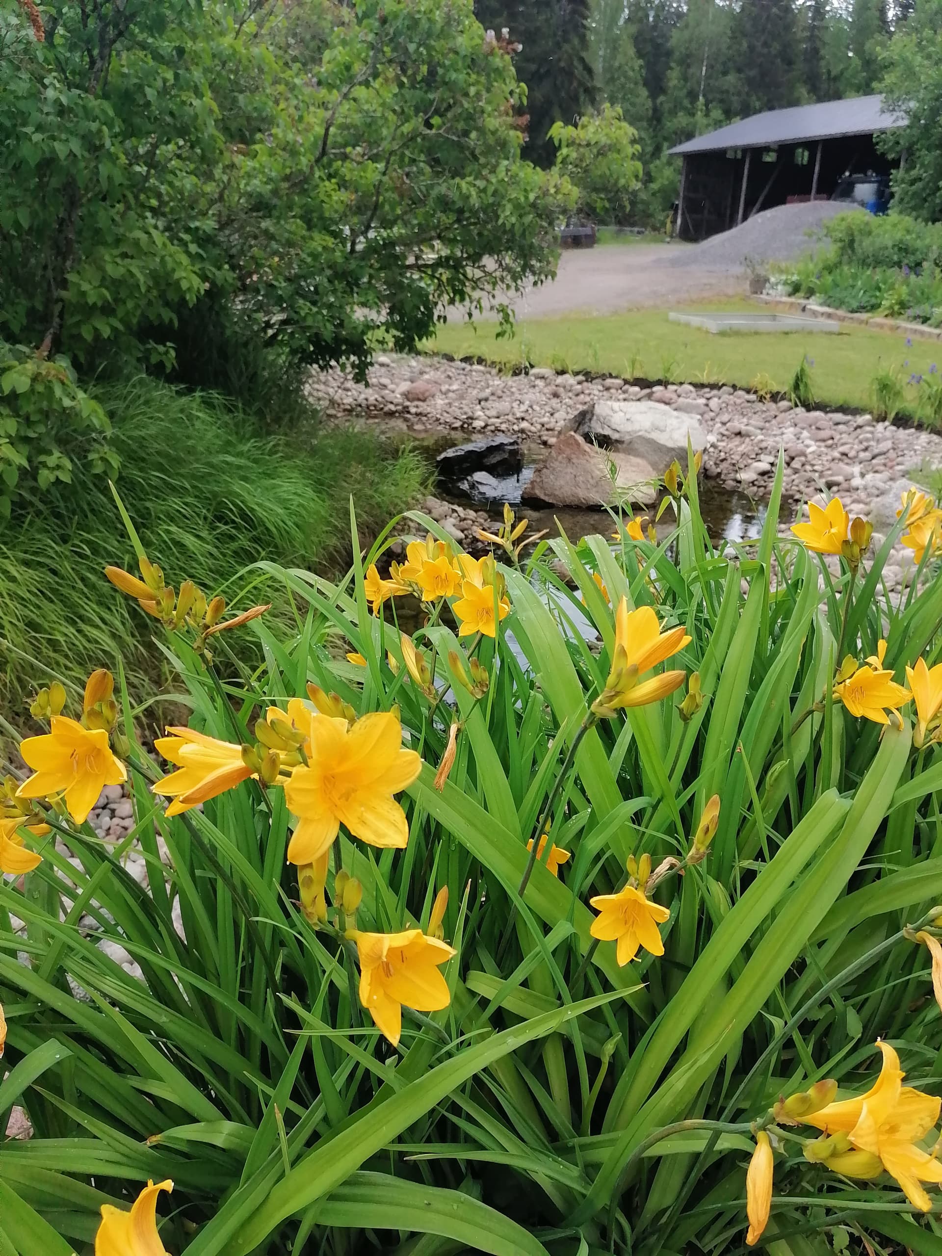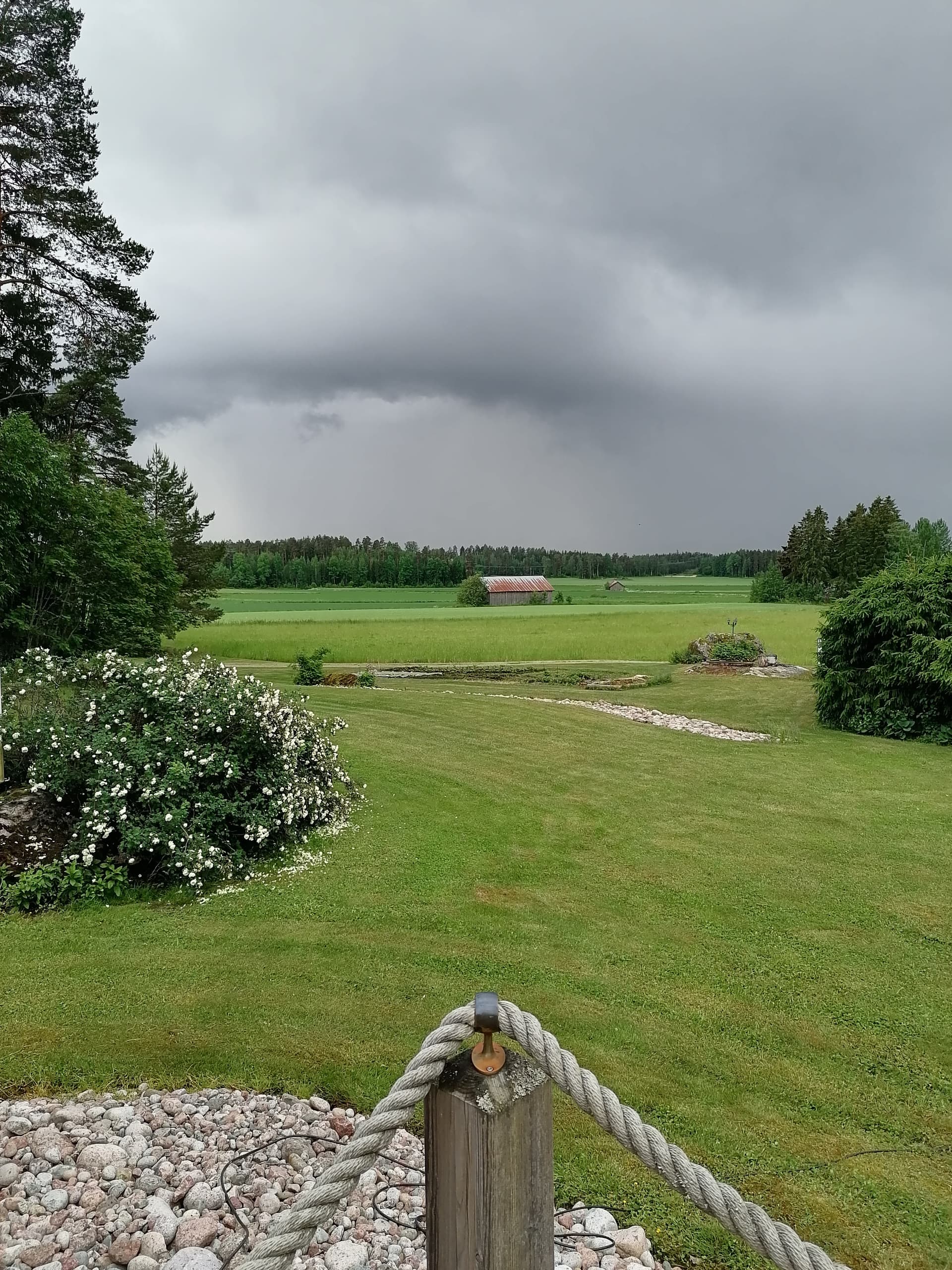Satoi todella rankasti ennen kuin saavuttiin, aurinko paistoi pihailun ajan ja sade alkoi uudelleen juuri kun siirryttiin grillimajaan herkuttelemaan kaikilla nyyttärituomisilla.