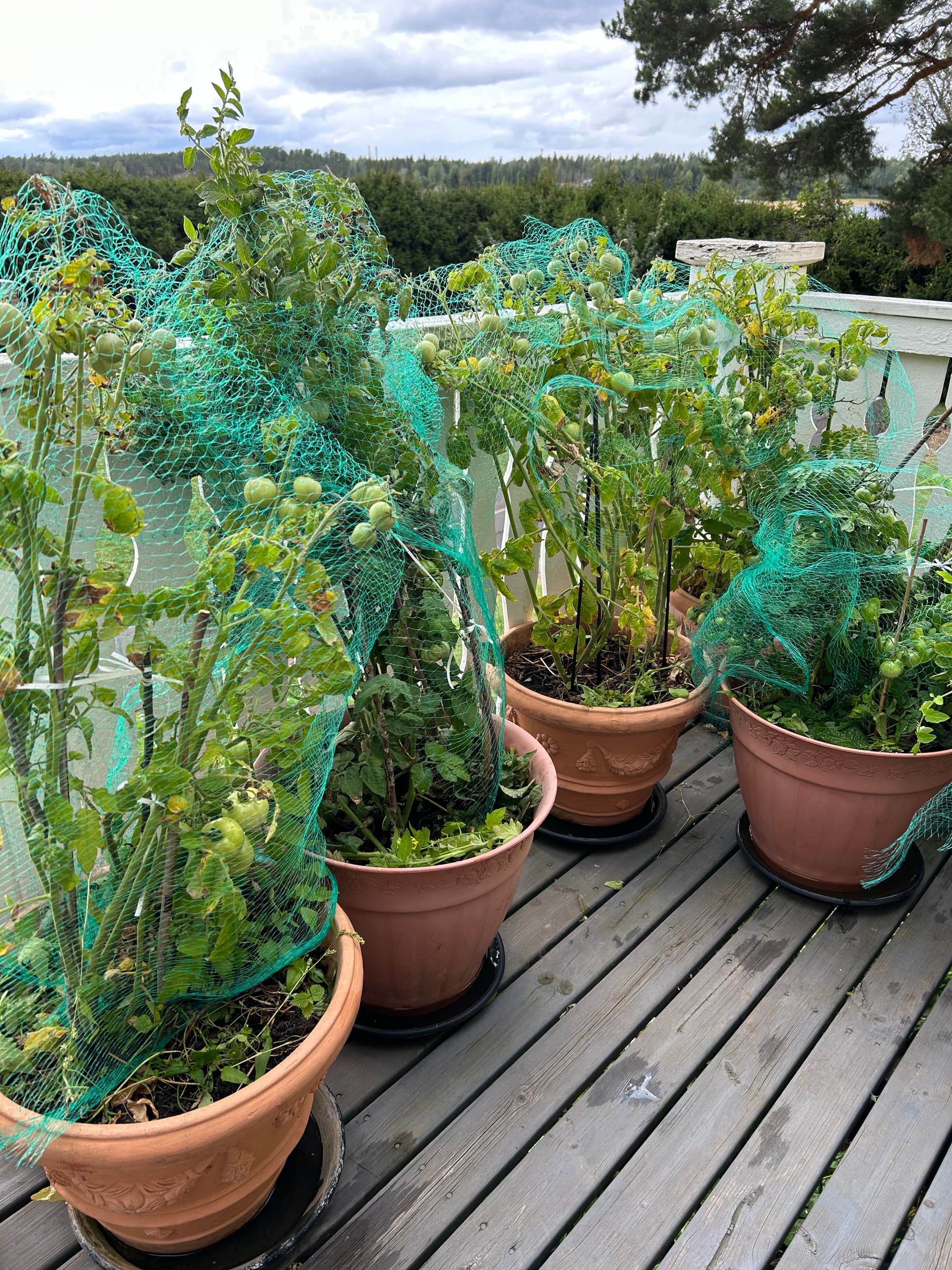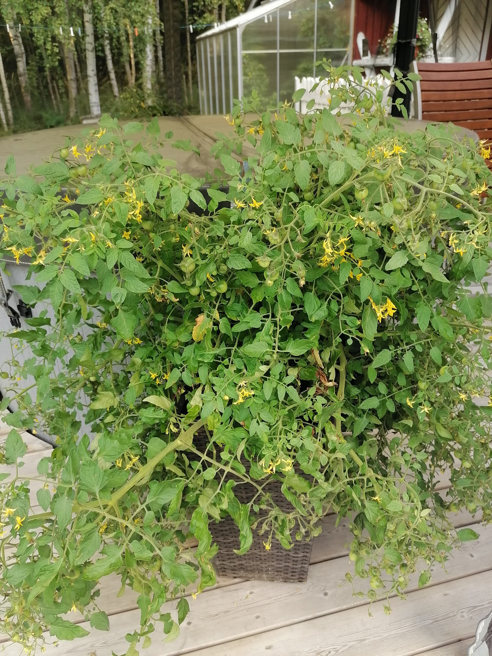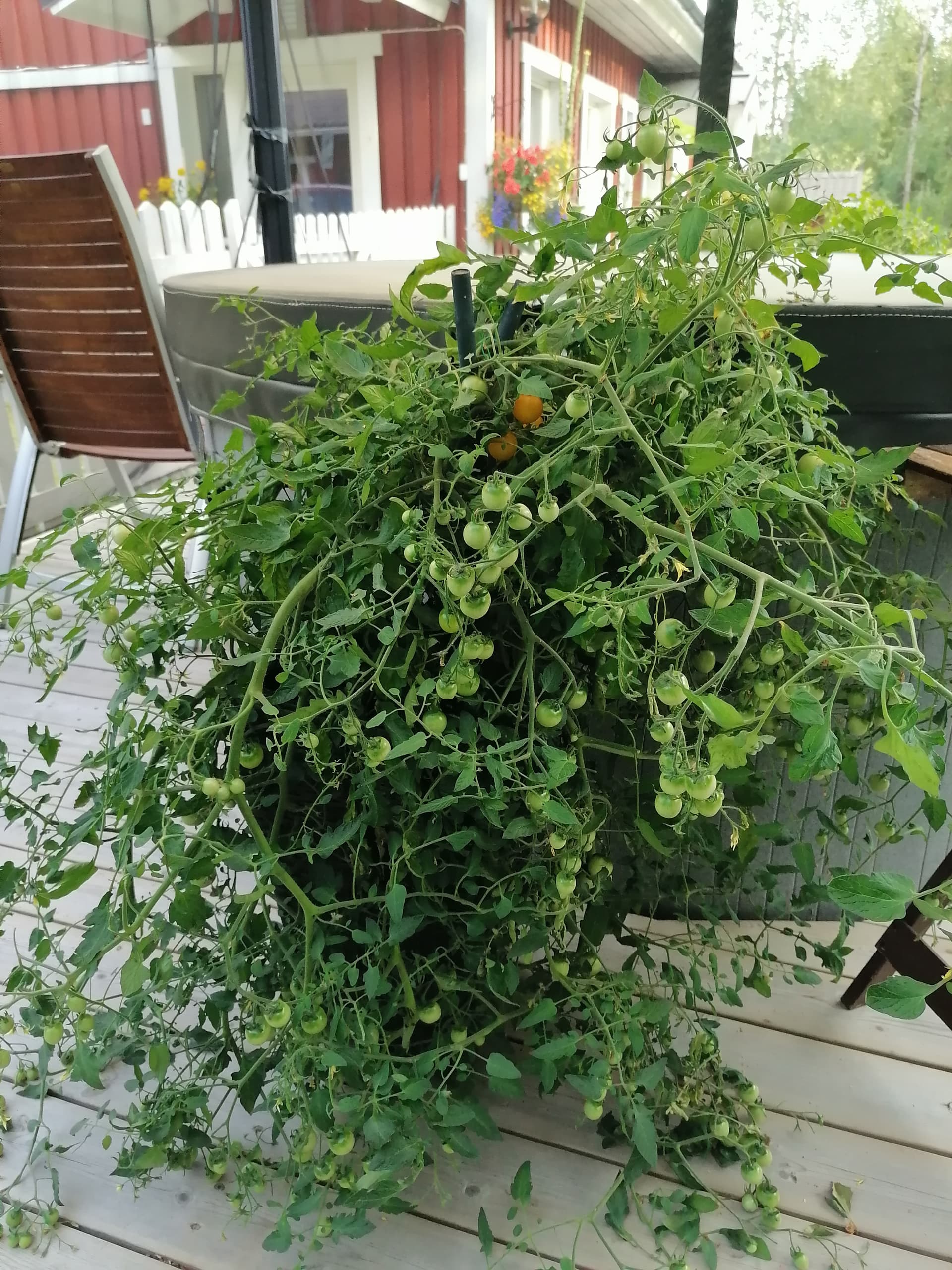 Hyvin tuottavat tomaatit nyt satoa. Mulla on kymmenen isoa ruukkua terassilla ja siitä tulee ihan riittävästi syötävää meidän taloudelle.