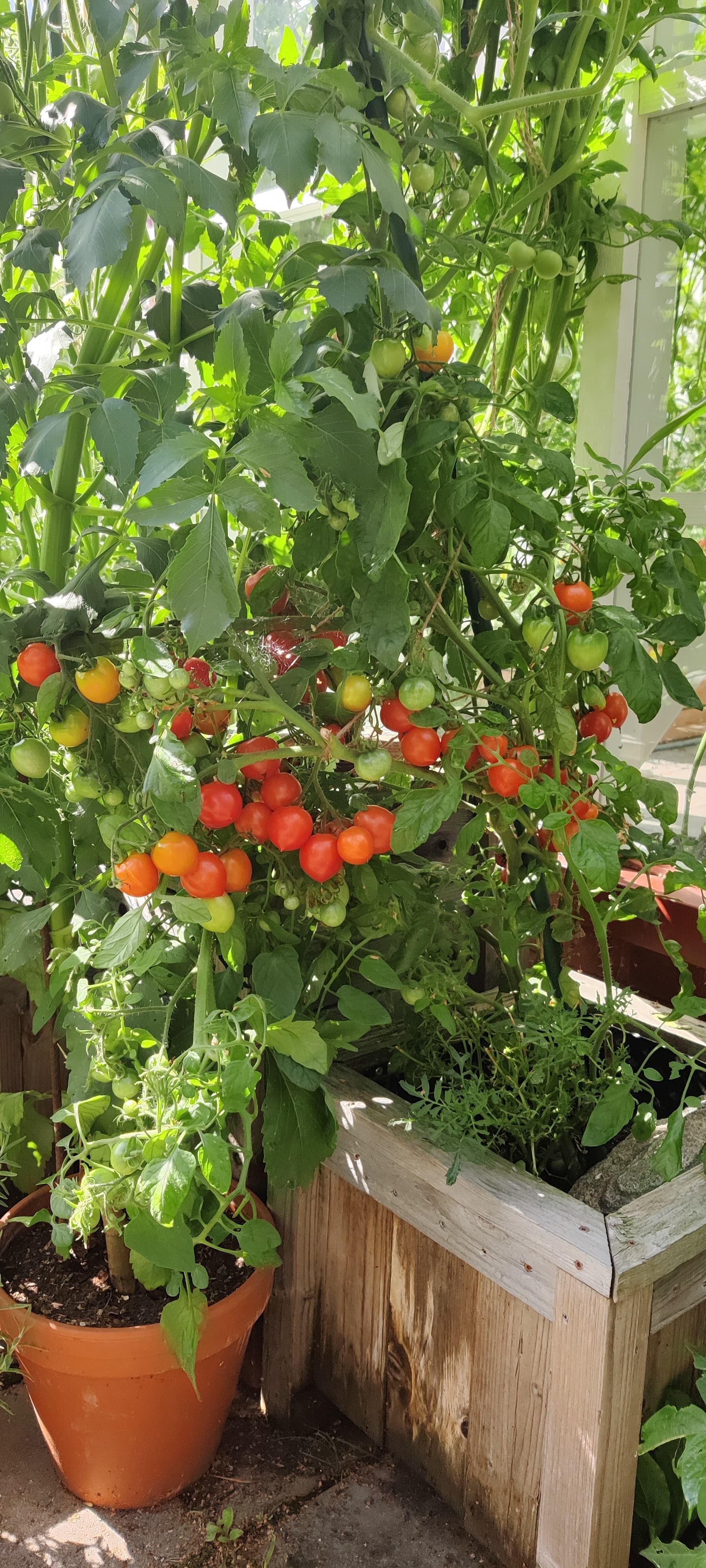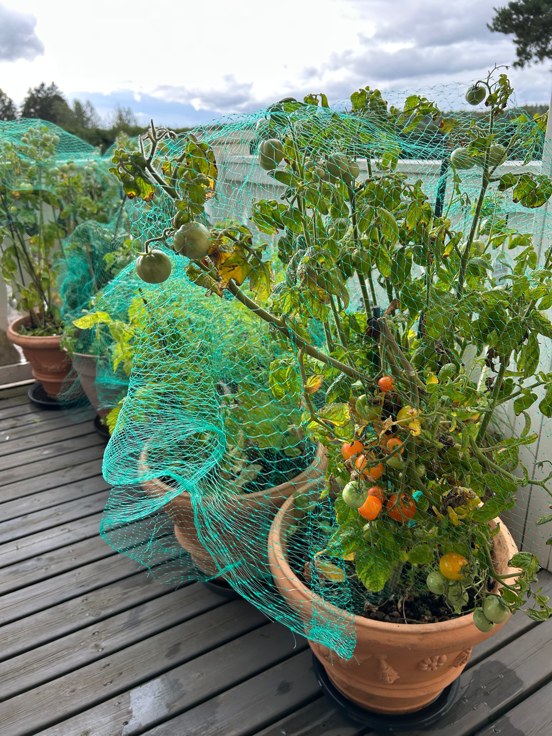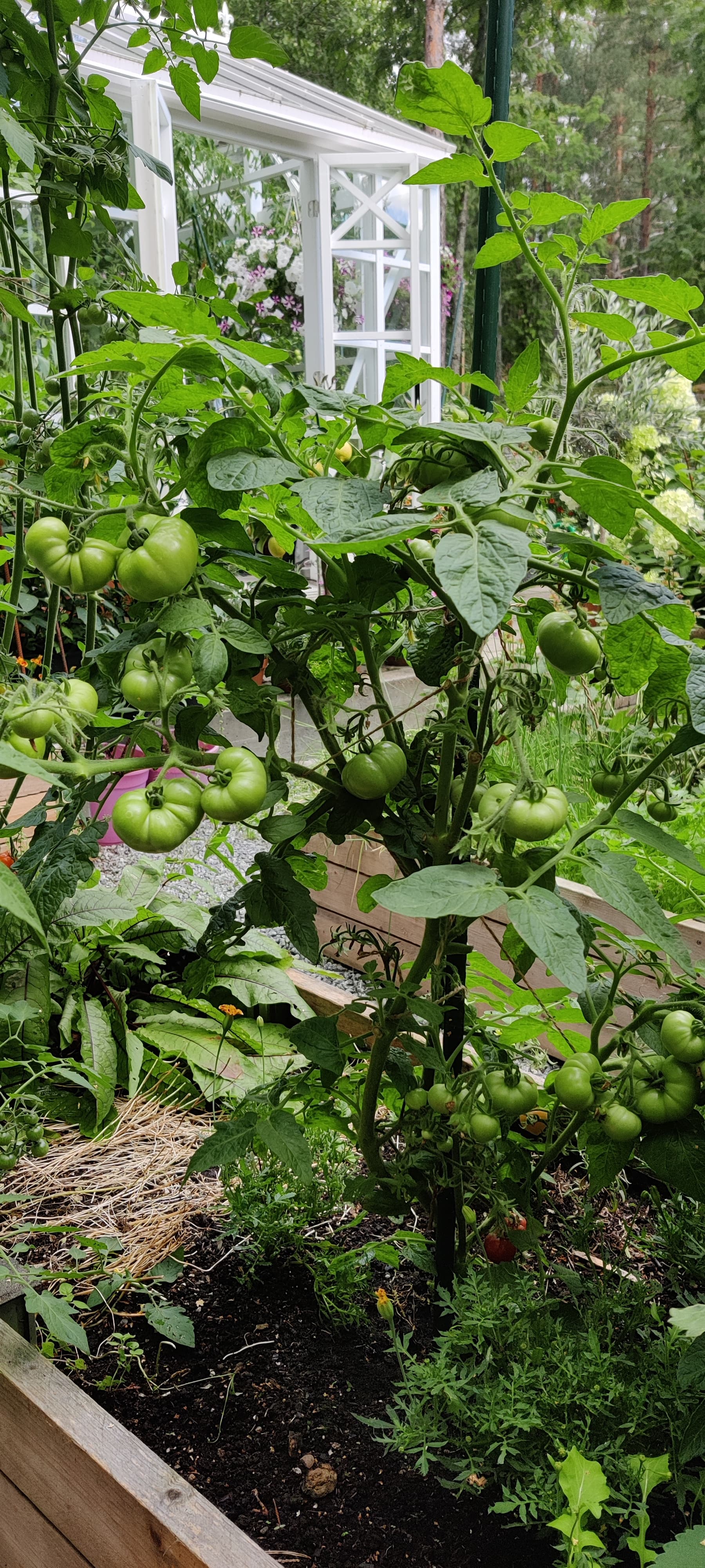 Hyvin tuottavat tomaatit nyt satoa. Mulla on kymmenen isoa ruukkua terassilla ja siitä tulee ihan riittävästi syötävää meidän taloudelle.