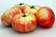 German gold, runkotomaatti, erittäin suuret kullankeltaiset punamarmoriset hedelmät. Mehukas, miellyttävän hapokas hyvä maku. 90 days.
