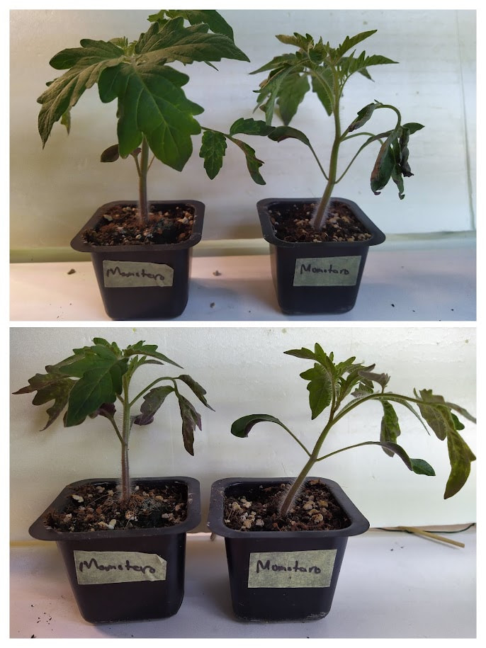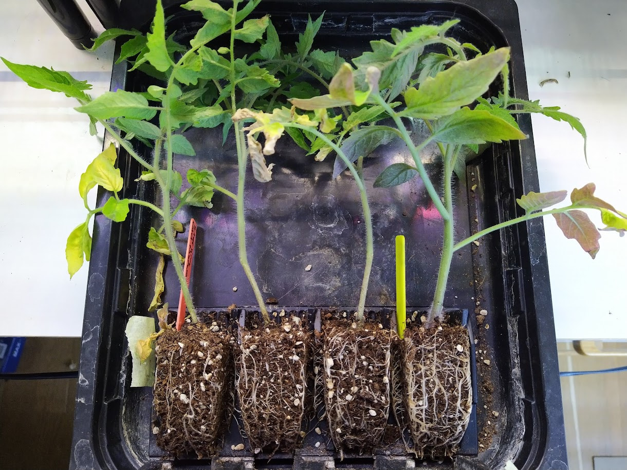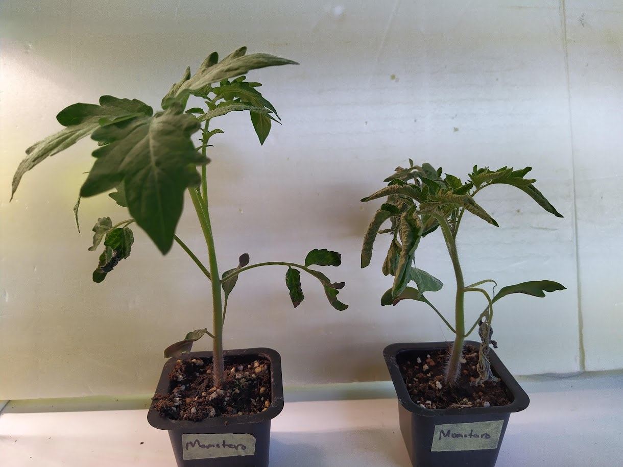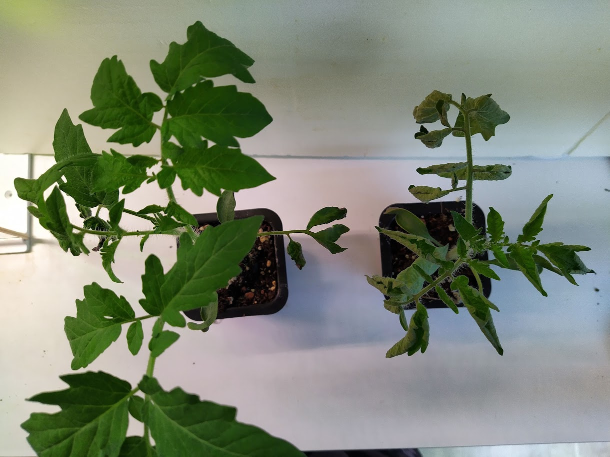 Nyt taitaa olla sopiva aika muistuttaa siitä UV-B valon puutteesta johtuvasta tomaatintaimien näivettymisestä, josta olen tainnut kirjoittaa täällä useana keväänä. Nykyisin yleiset ja hyvin toimivat LED valot eivät sisällä joillekin kasveille tarpeellista UV-valoa vaikka lamppu olisikin niin sanottu täyden spektrin valo. Tälle näivettymiselle ei ole hyvää suomenkielistä nimeä ja englanniksi sitä kutsutaan intumescence. Jotkin lajikkeet kärsivät tästä näivettymisestä pahemmin kuin toiset. Omien havaintojeni mukaan ilmiöstä kärsivillä taimilla on pieni juuristo ja jos samalla alustalla on hyvin voivia taimia ja näitä pienijuurisia ja taimia kastellaan alustan kautta, nämä pienijuuriset kärsivät siitä vielä enemmän ja alkavat pudottamaan lehtiään. Huonoimpaan kuntoon päässeet taimet lopulta kuihtuvat ja kuolevat.