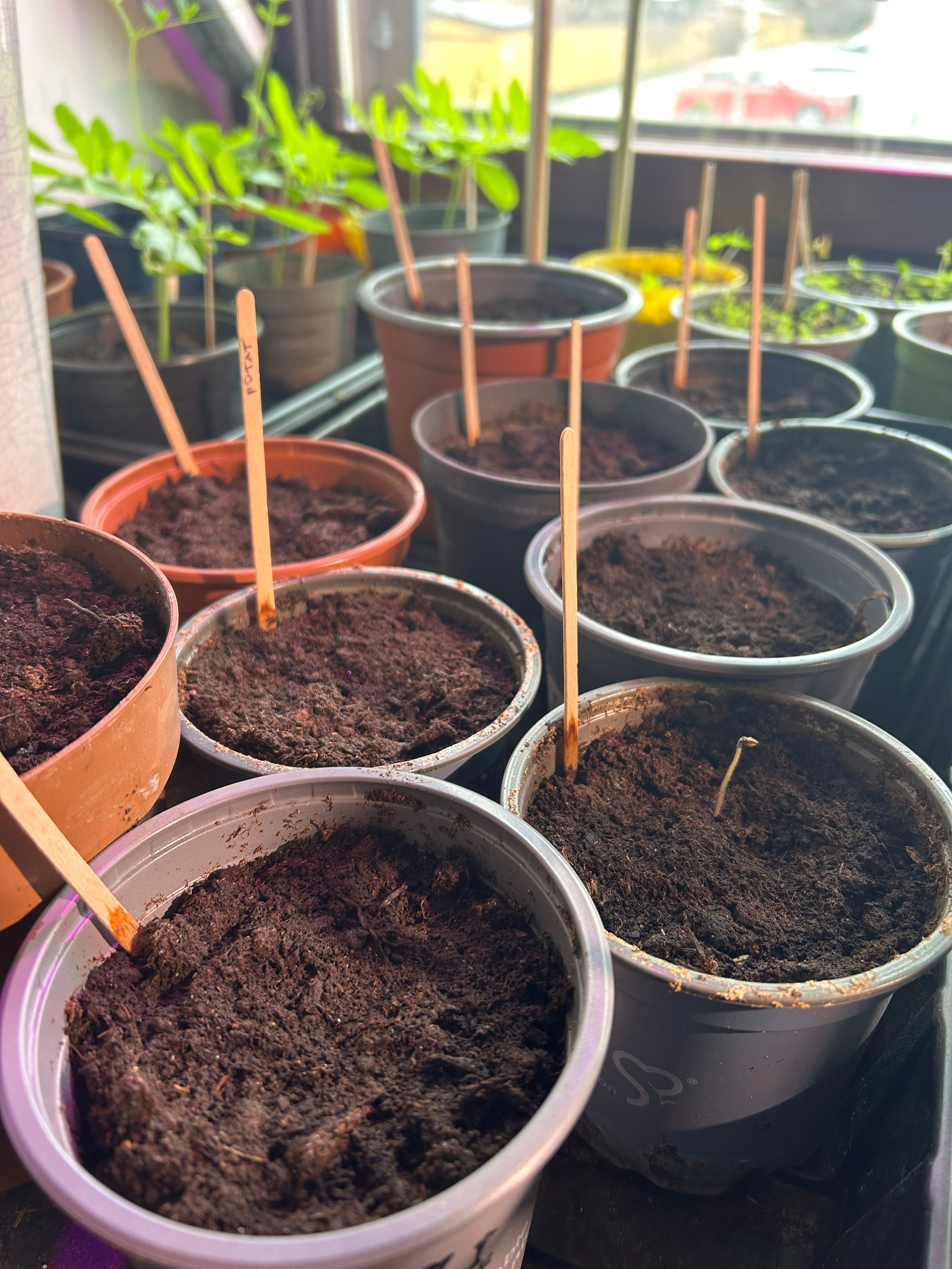 Tässä kuvassa on minun LEDvalon alla kasvaneita taimia vuodelta 2022. Oikeassa reunassa on eri lajiketta, mikä on kasvanut normaalisti.