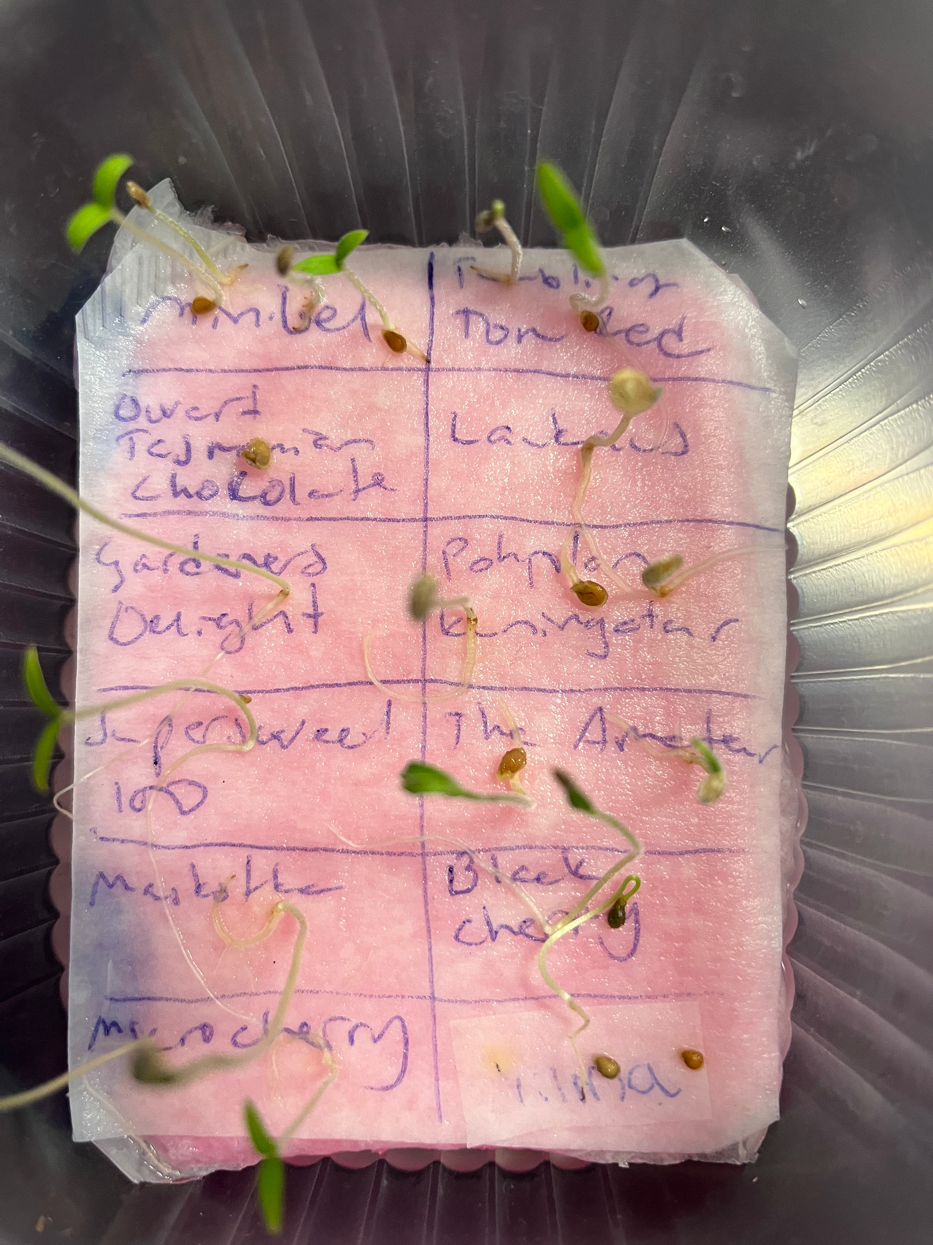 Itse idätän tomaatit lautalla, hyvin lämpimässä n. 25-27 asteen lämmössä. Itää silloin neljännestä päivästä alkaen puolentoista viikkoon asti. Jotkut siemenet on hitaampia.