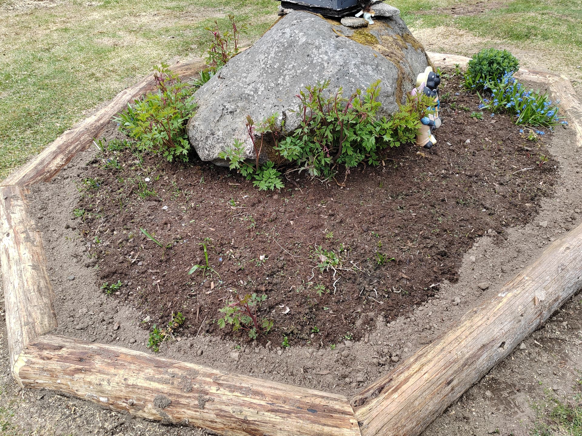 Tänään oli oikein vappumarssi kun isännän kanssa kottareilla täytettiin nuo rukkilavojen laita laatikot viime vuoden lehtikompostilla ja jo vähän maatuneella koivuhakkeella.