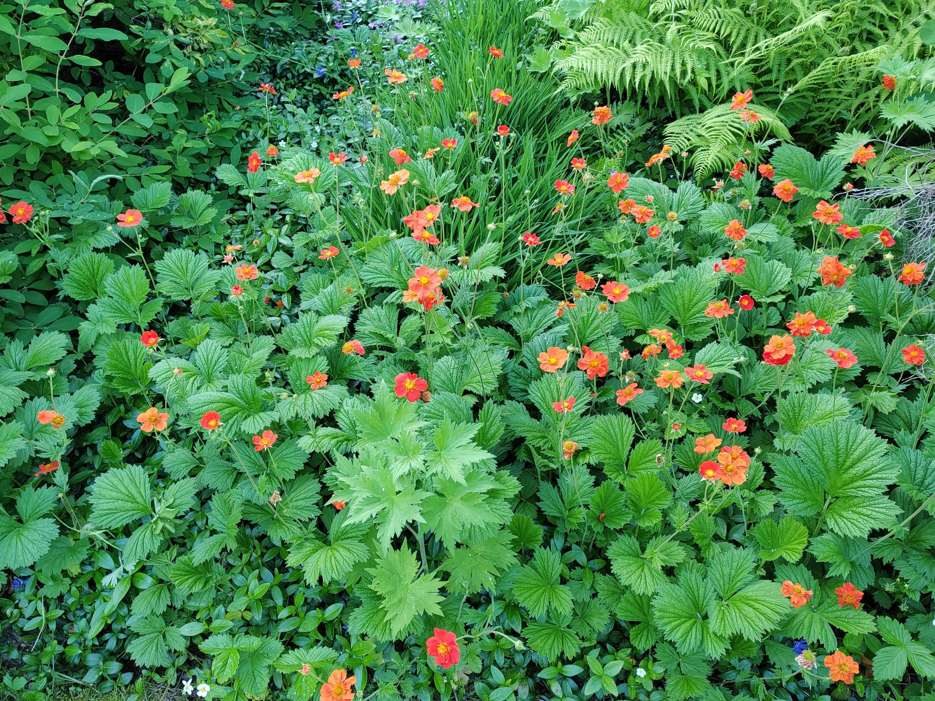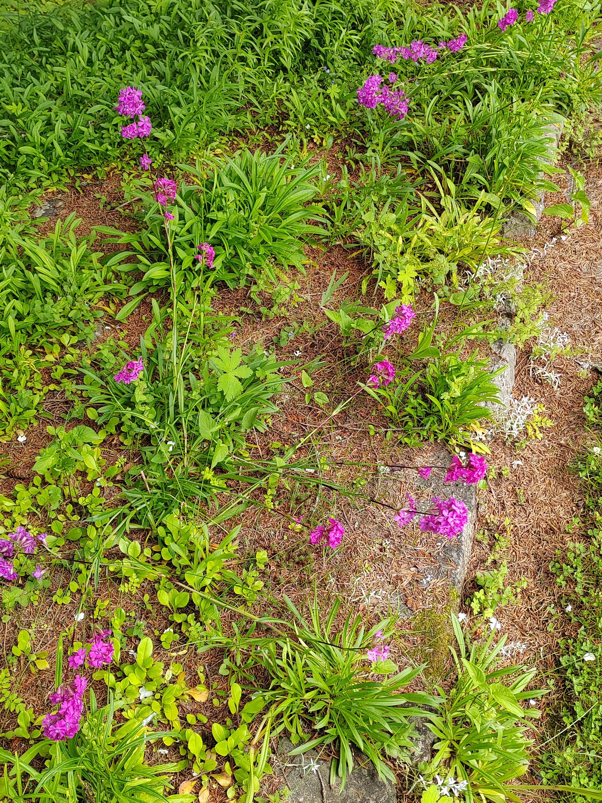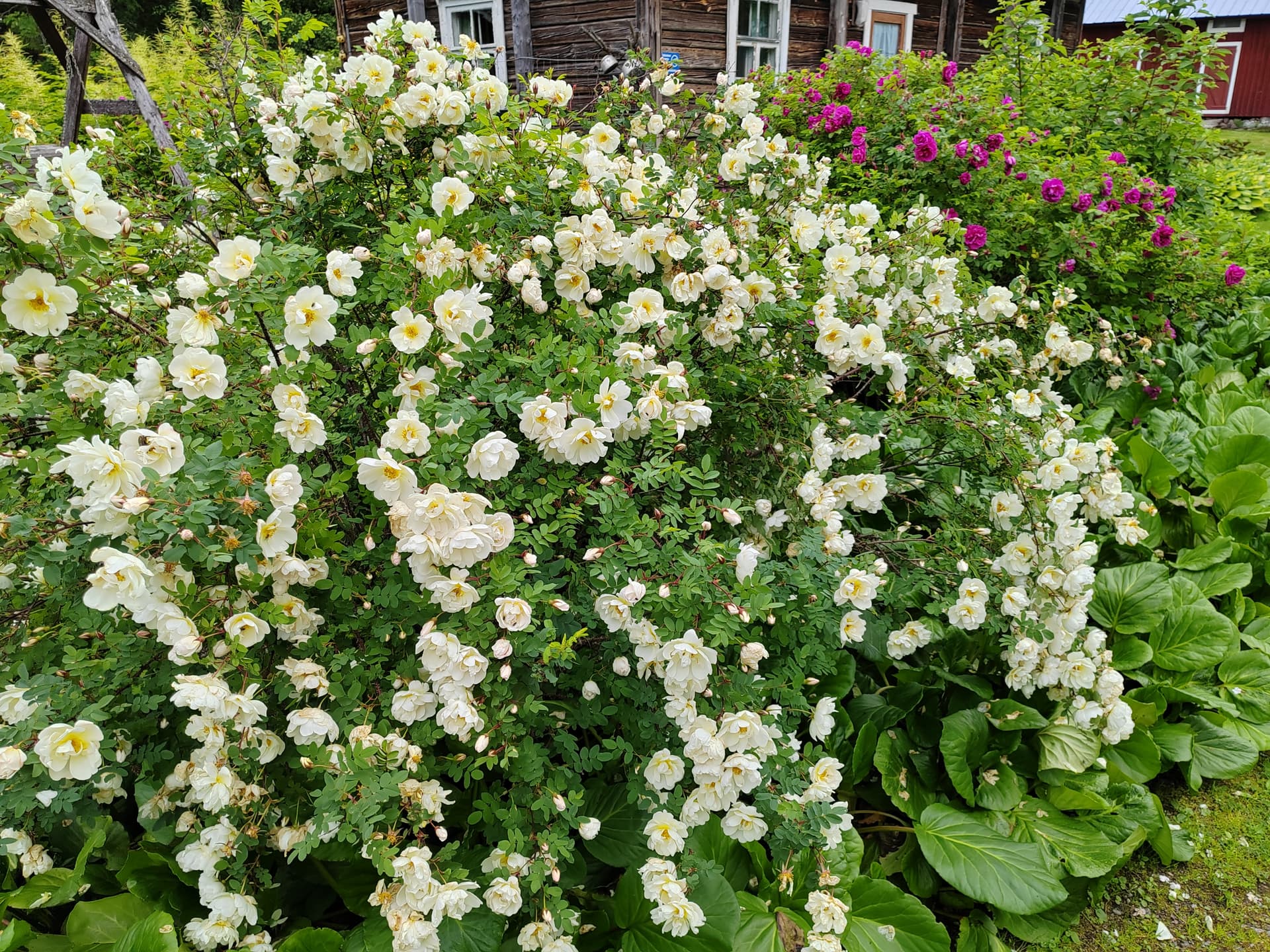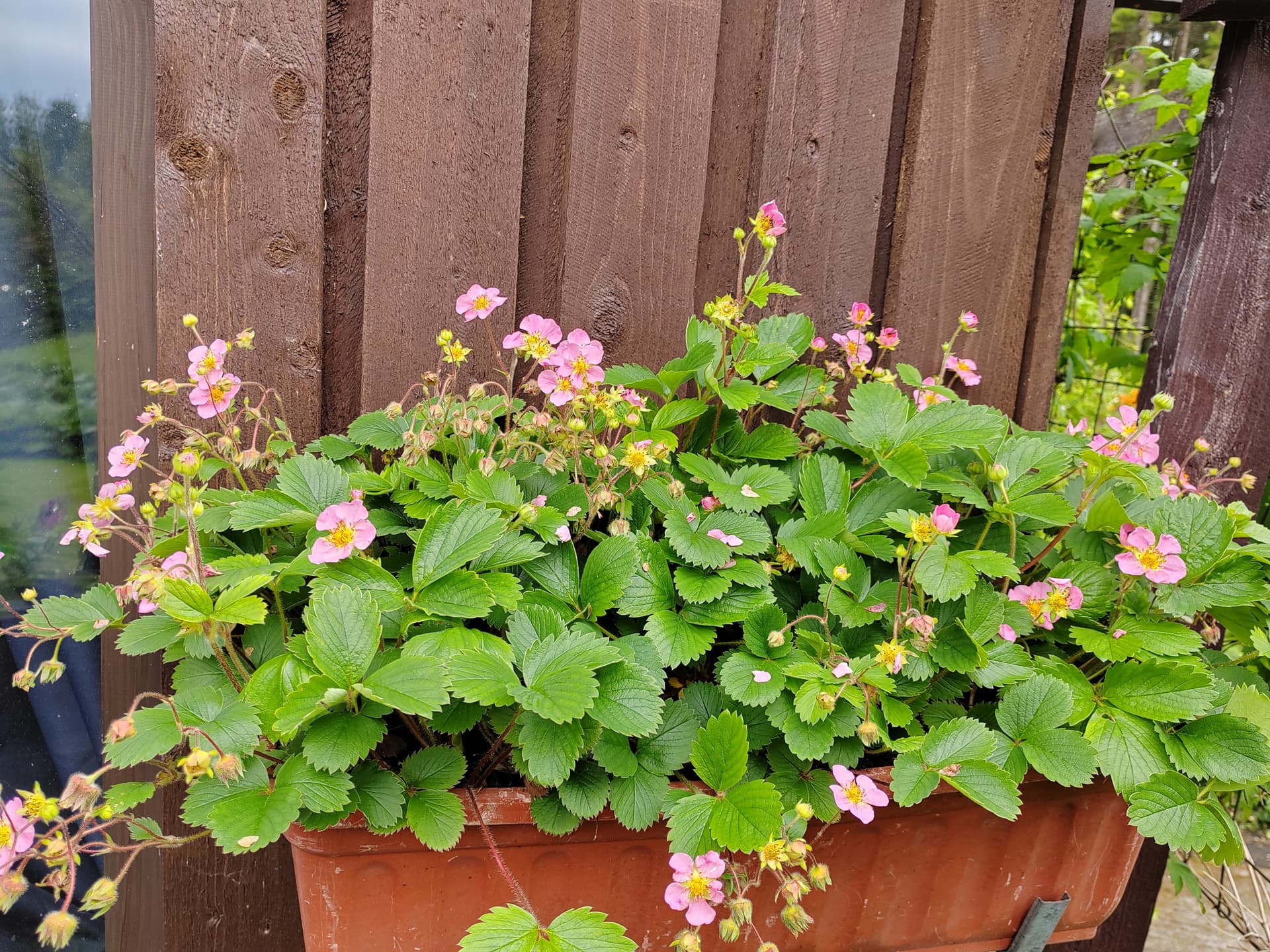Tämän punakukkaisen mansikan ostin aikoinaan reunakukaksi. Näkyy sitä paikoin vielä olevan kentälläkin mutta rusakothan sen jossain vaiheessa syö.