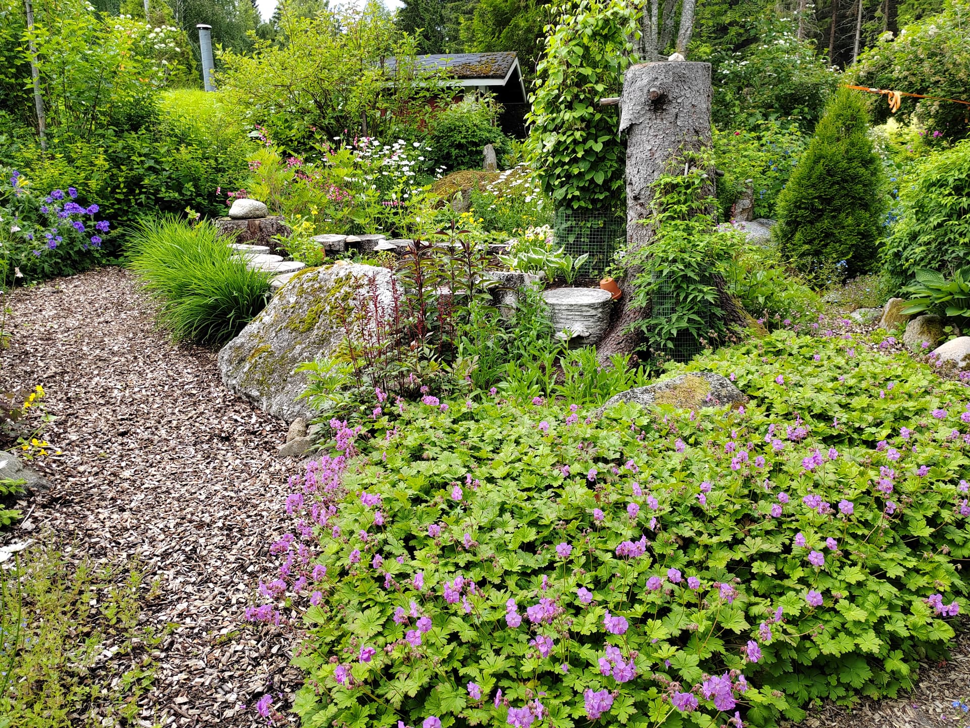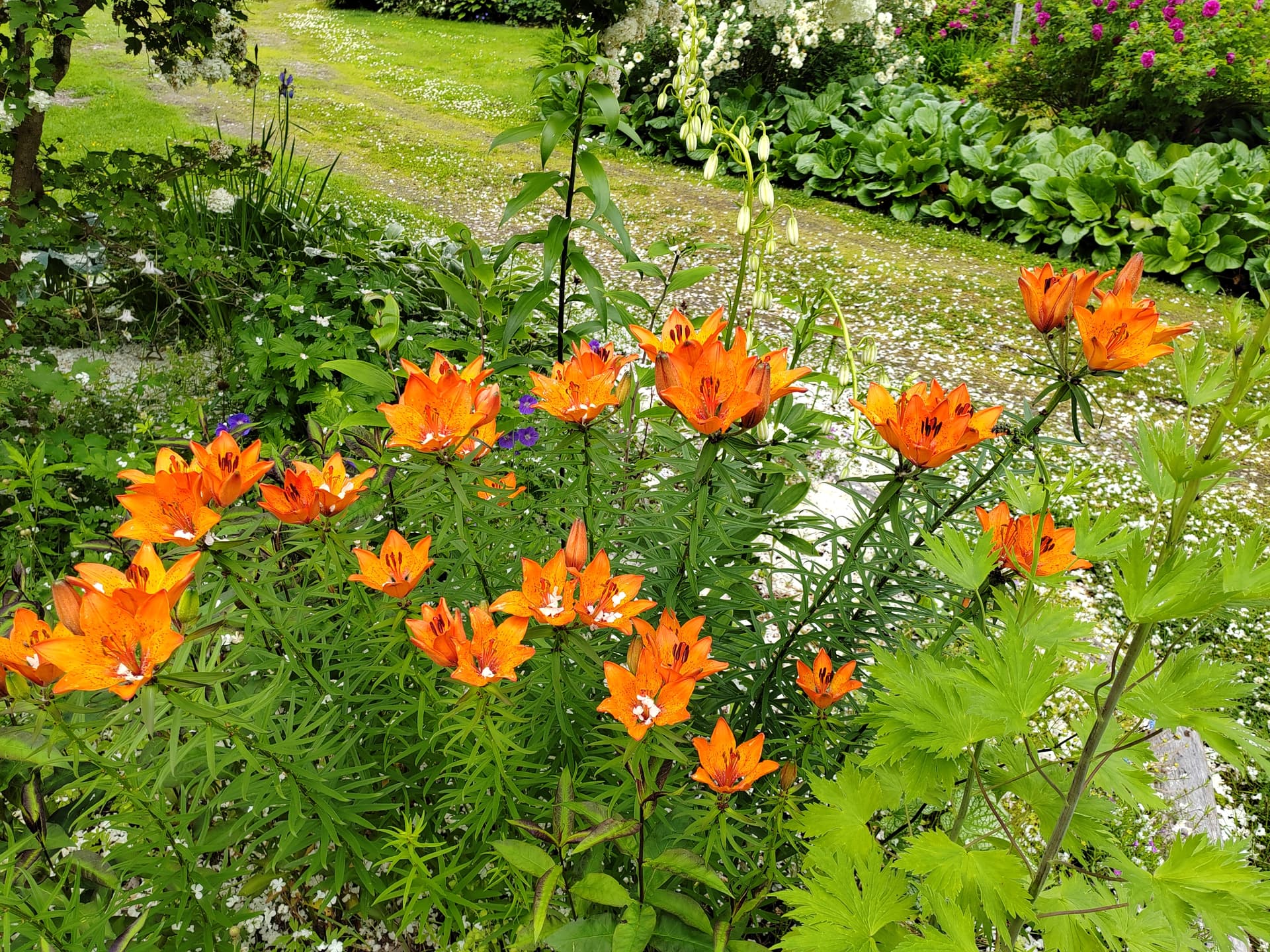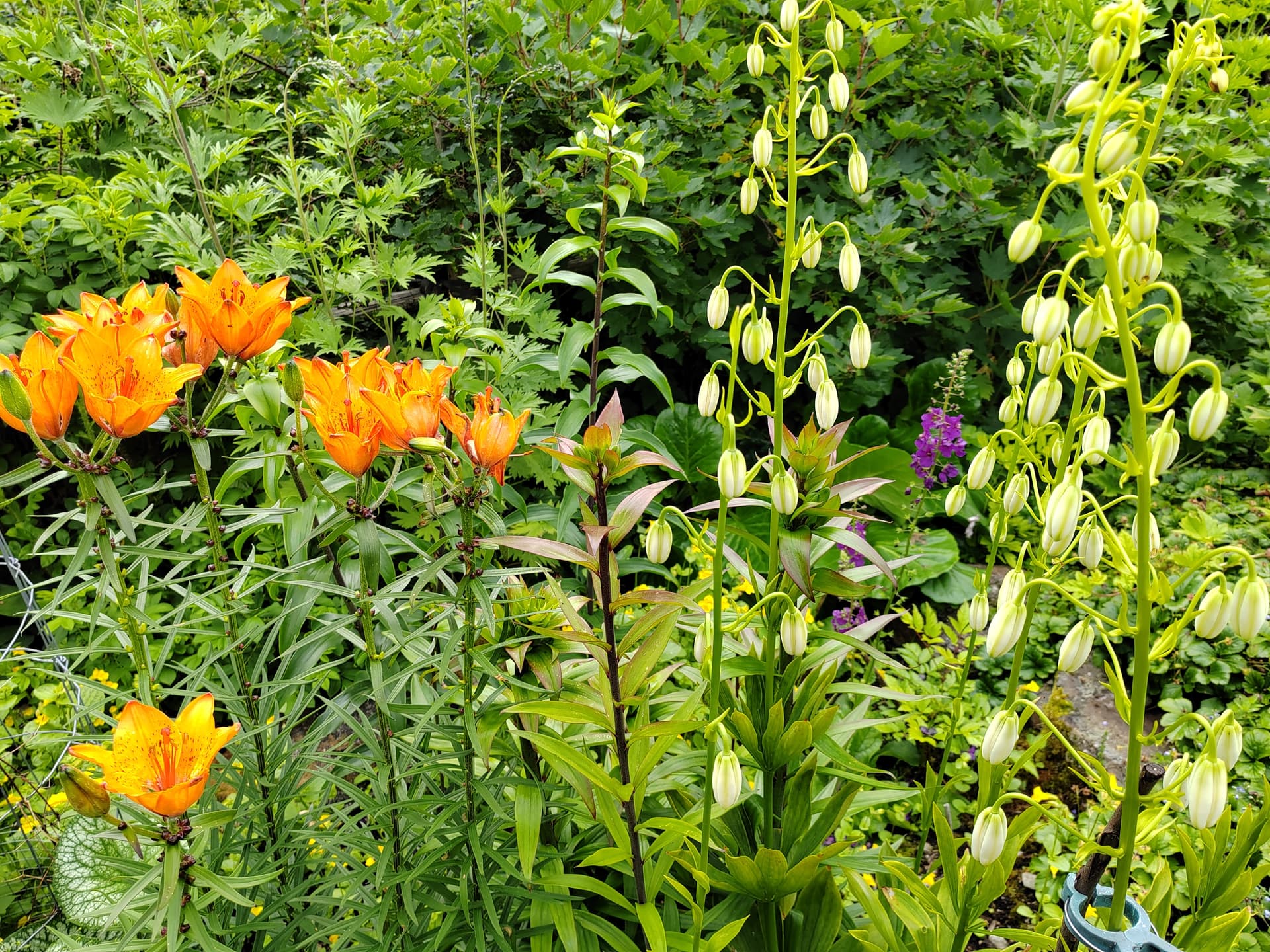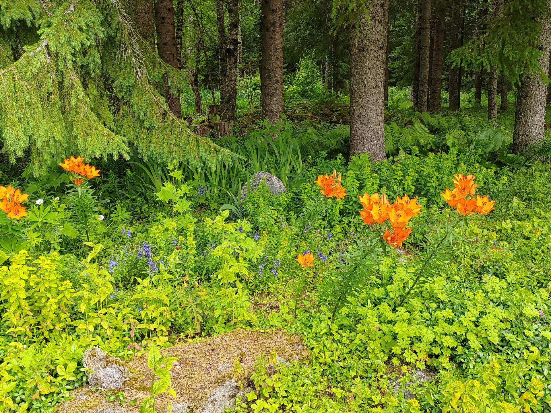 Metsän laidassa ruskoliljat pirteinä. Loistotädyke aloittelee kukintaa
