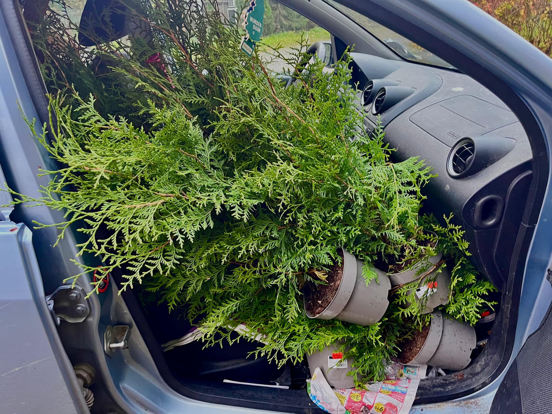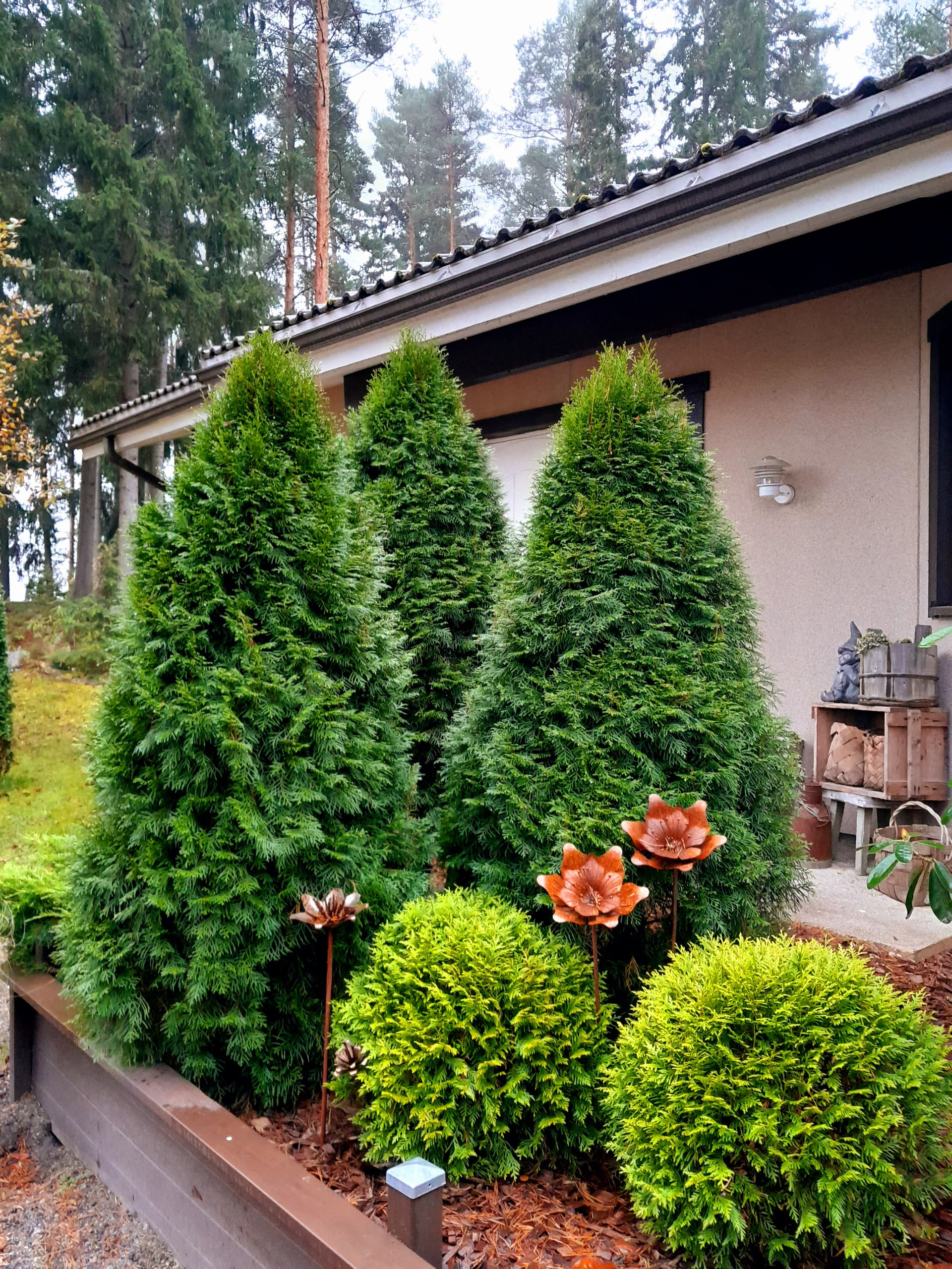 Ostin 16x Kartiotuijia. Pitää saada suojaa kadulle, ettei sieltä nää pihalle liian selvästi.. Timantti ois parempi, mut nuo oli 3€/kpl eikä timantteja enää näkynyt..
