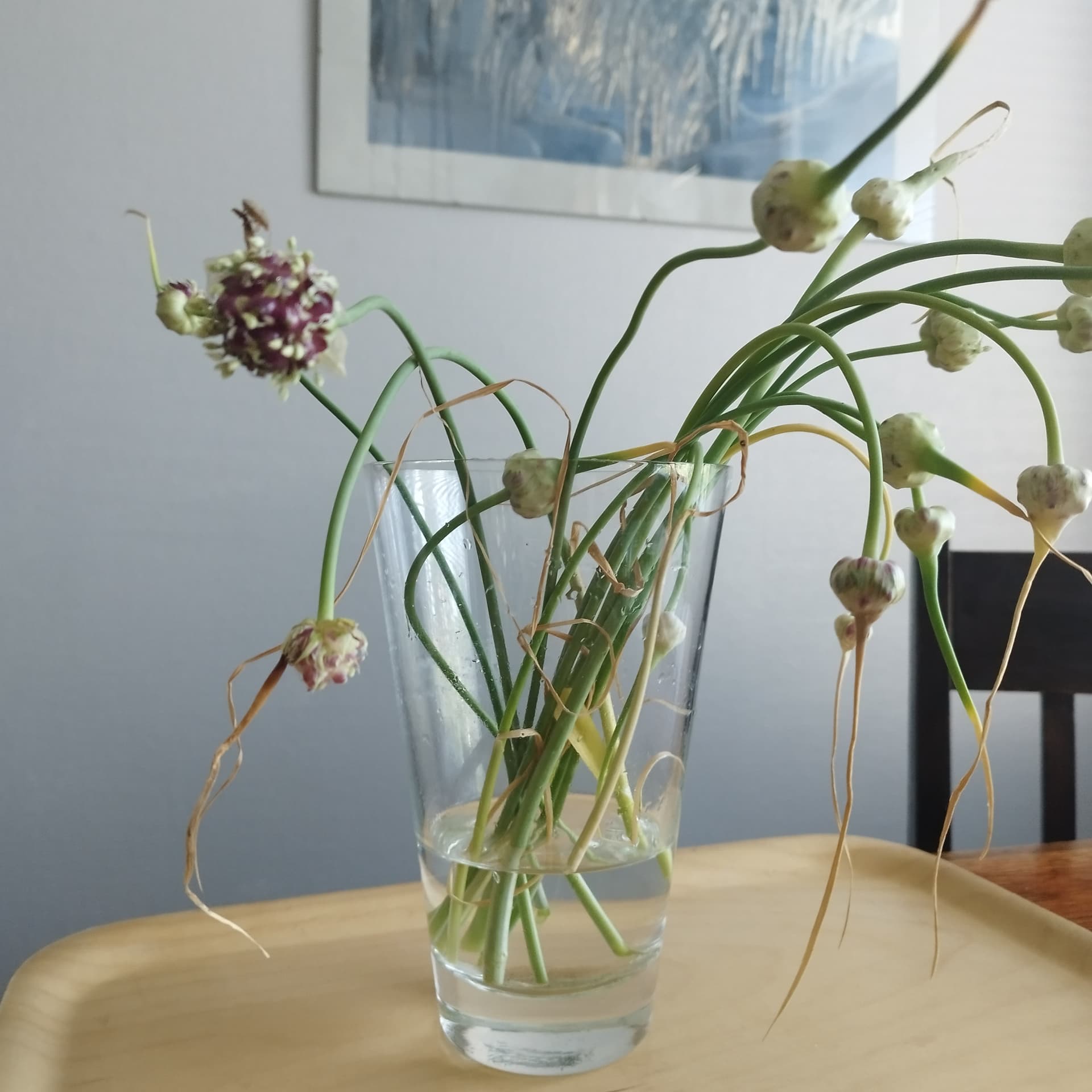 Tein pestoa itusilmuista ja söin jo. Osan annan kasvaa, nämä nostelin, pieniä ja tulisiakukkapenkeistä ja kasvatan kokoa vedessä. Ripottelen ylimääräisiä itusilmujs syksyllä kukkapenkkiin.