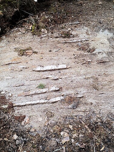 Puutarhan hoitoa=kirjanpainaja ja myrskytuhoja kallioiden takana, onneksi ei näy pihaan. Kevyttää rutikuivaa polttopuuta harvennusmetsästä suoraan takkaan, täällä oli ennen rehevä lehto.