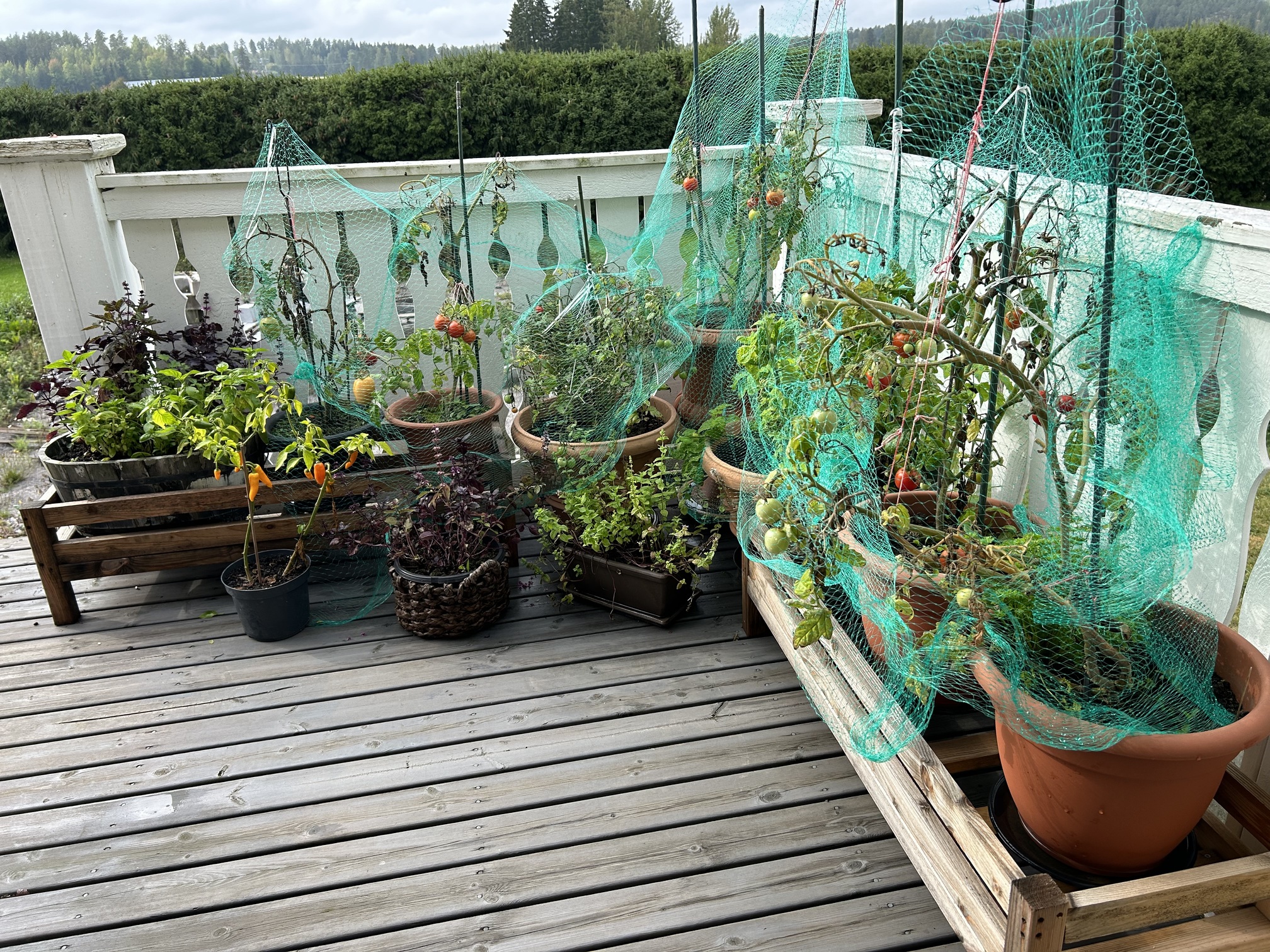 Meillä täällä banaanirannikolla on ihan trooppinen ilma tänään. Ulkona +21 ja ilmankosteus varmaan 100% kun on satanut. Ei tuolla ulkona pysty olemaan, kun hiki vaan valuu. Tomaatit kypsyy terassilla vielä vaan.