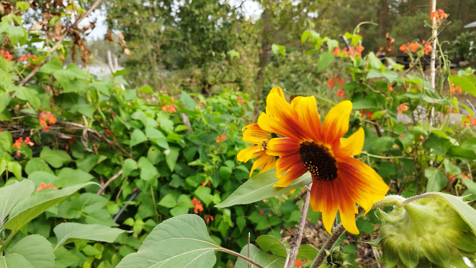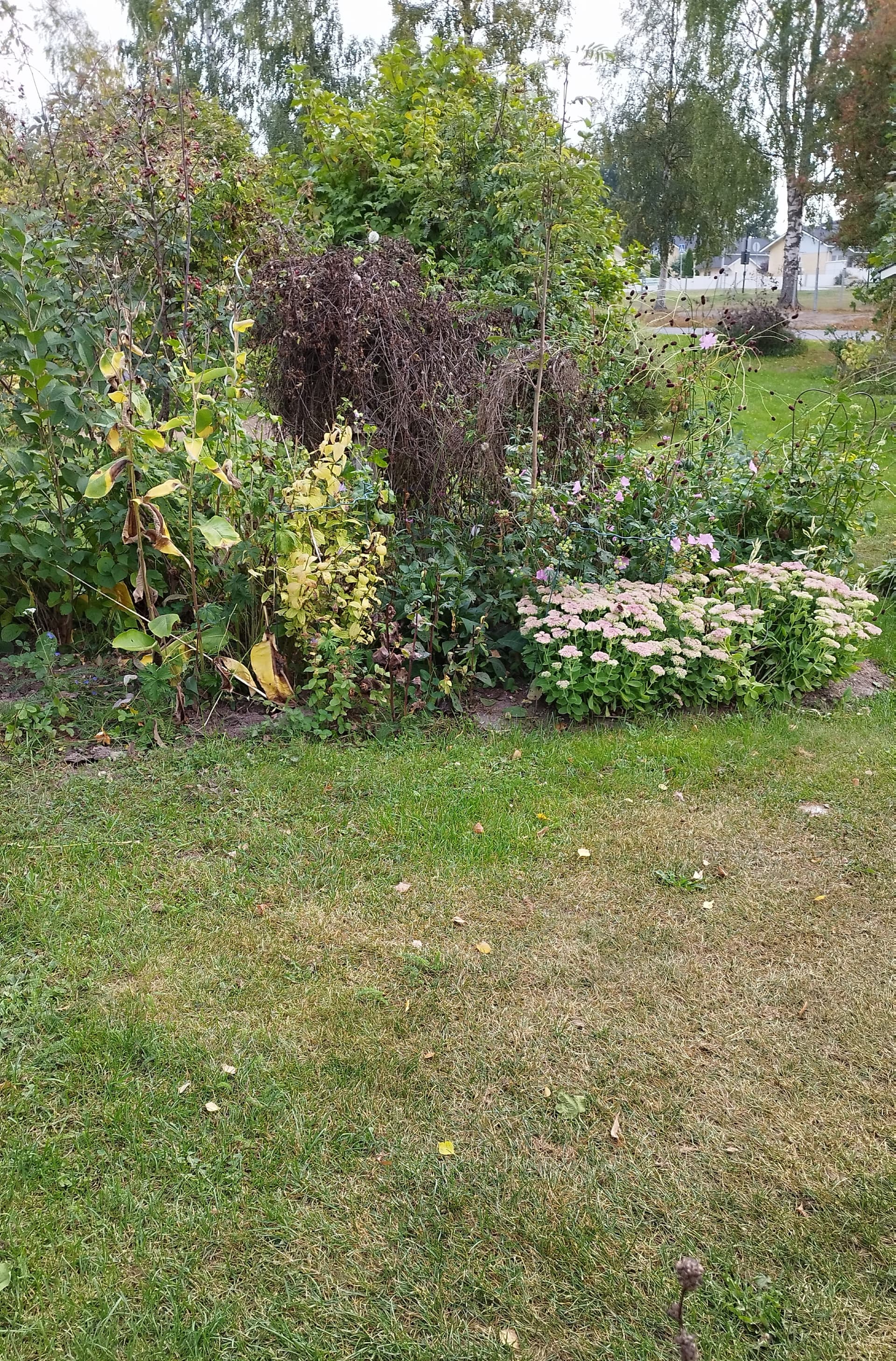 Nyt on meilläkin halla puraissut. Tomaatit ja sammarit ovat paleltumeet. Maksaruoho ja helminukkakkärä ovat vielä kukassa.