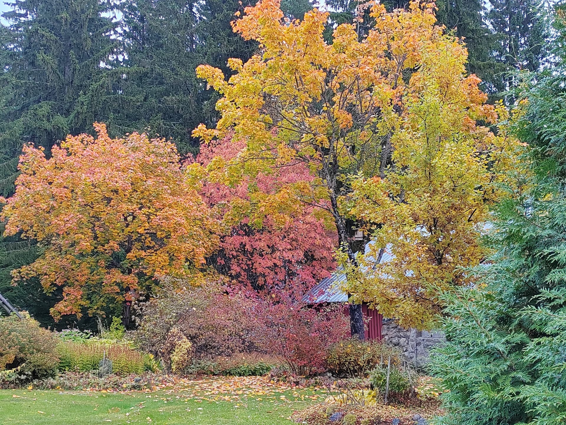 Täällä alkaa pensaiden ja perennojen ruskavärit olemaan kauneimmillaan.